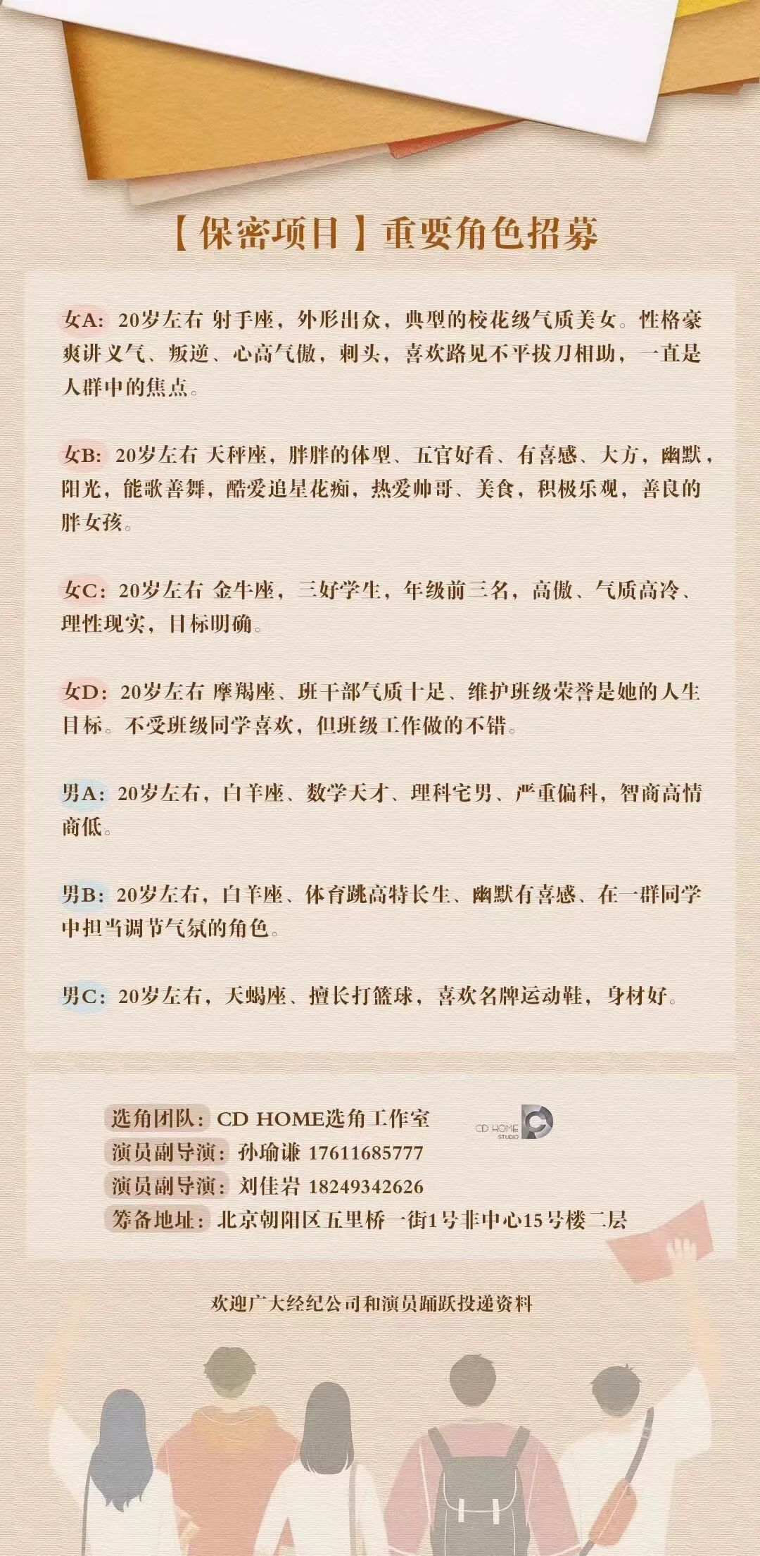 线上筹备合则约见,另需大量跟组角色及跟组演员,期待合作。