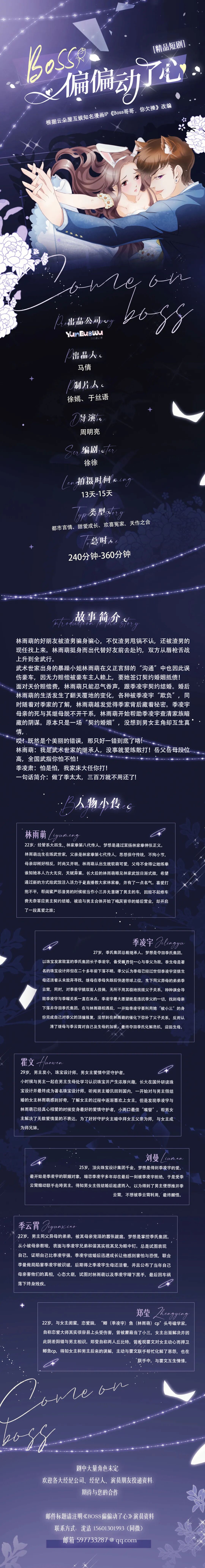 邮件标题注明《Boss偏偏动了心》演员资料,线上筹备合则约见,期待合作。