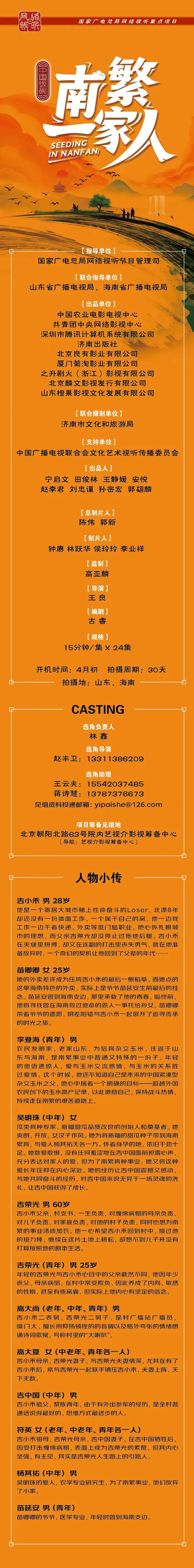演员统筹:岳春雨 15067905894(微信同步)