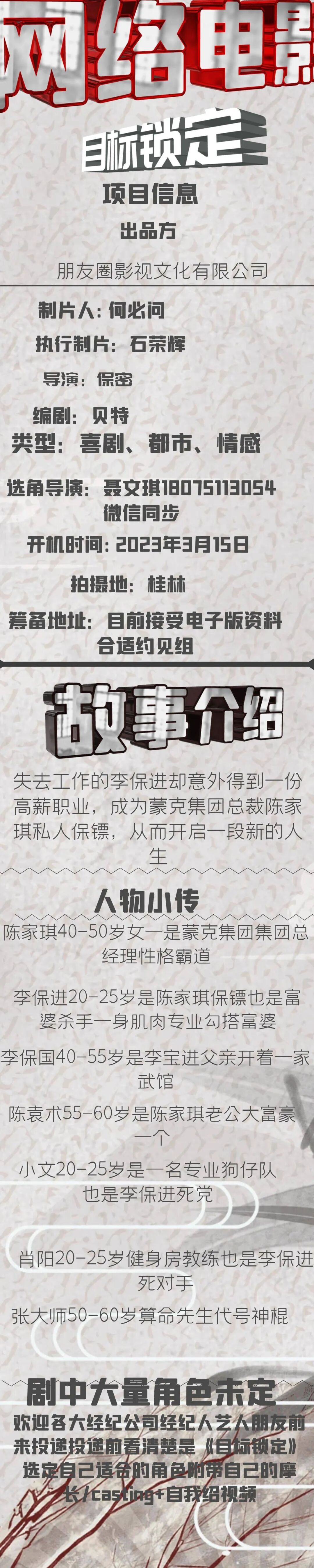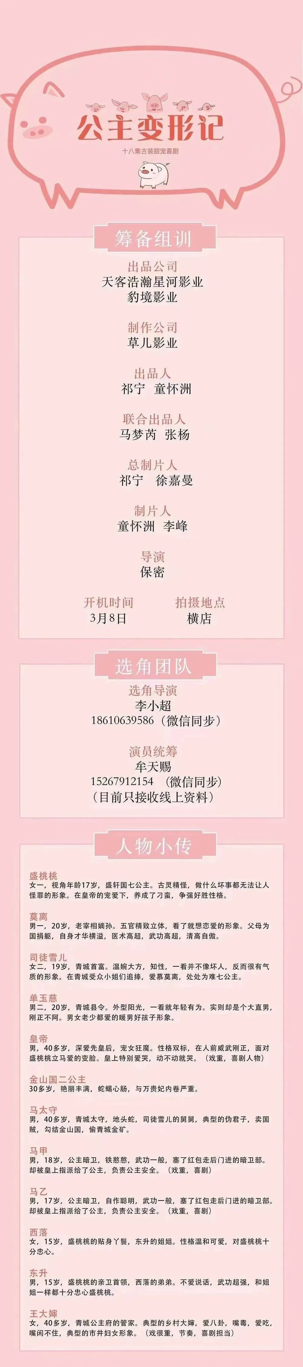 选角导演:李小超 18610639586(微信同步)
