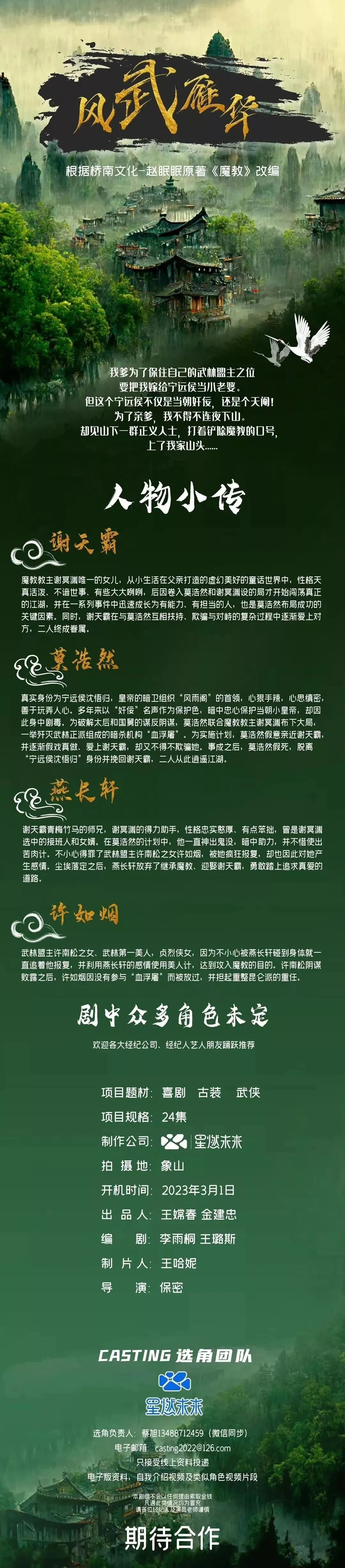 选角负责人:蔡旭13488712459(微信同步)