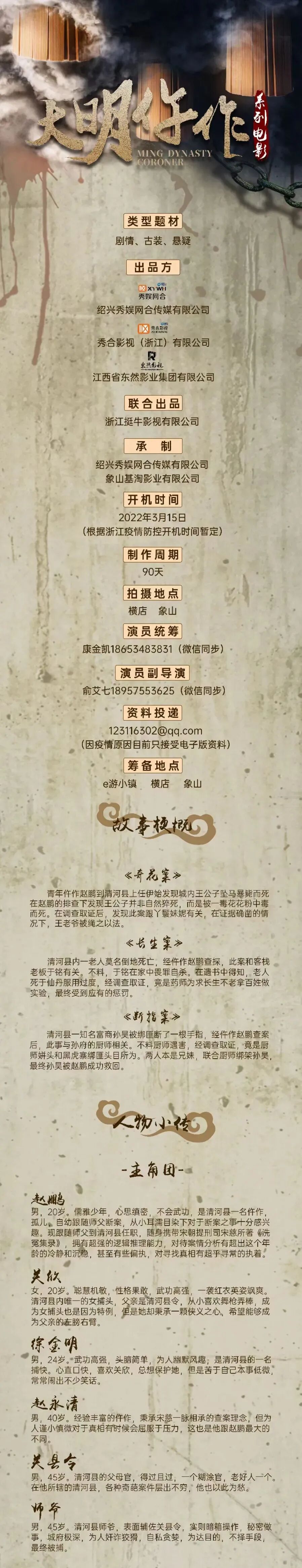 出品方:绍兴秀娱网合传媒有限公司、秀合影视(浙江)有限公司、江西省东然影业集团有限公司