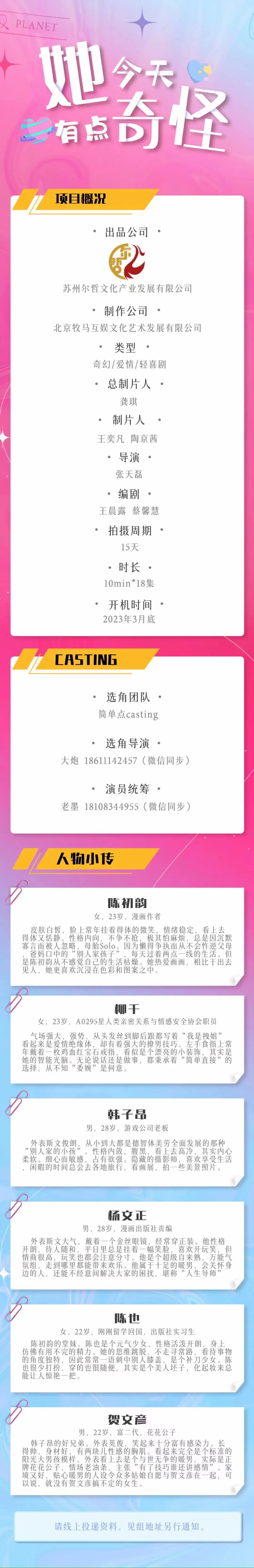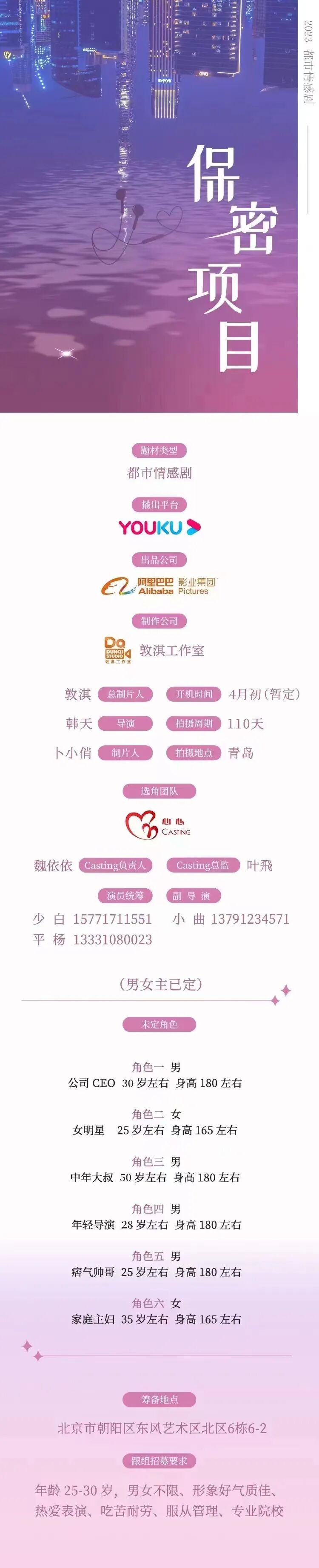 本栏目发布组讯由小编采集与业界共享,组讯如有变化请以实际情况为准。如果遇到剧组收费情况,请谨慎对待并私信官微@戏客Seeker,我们会公示问题组讯并及时处理。谢谢。