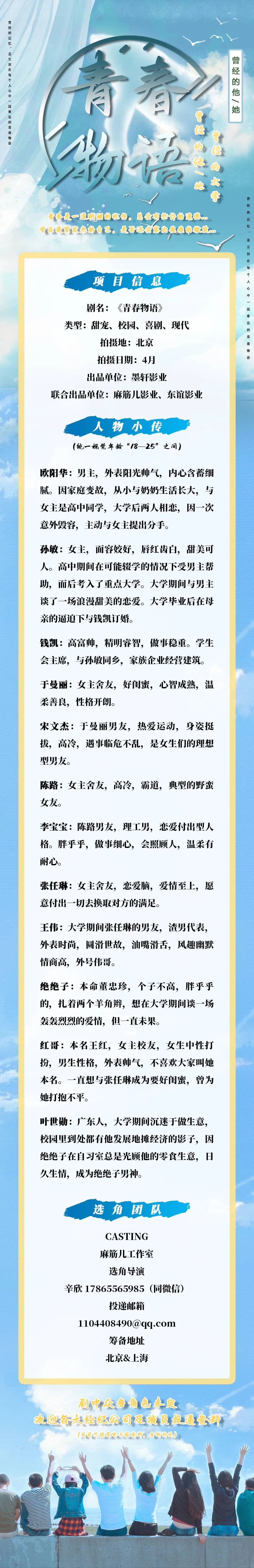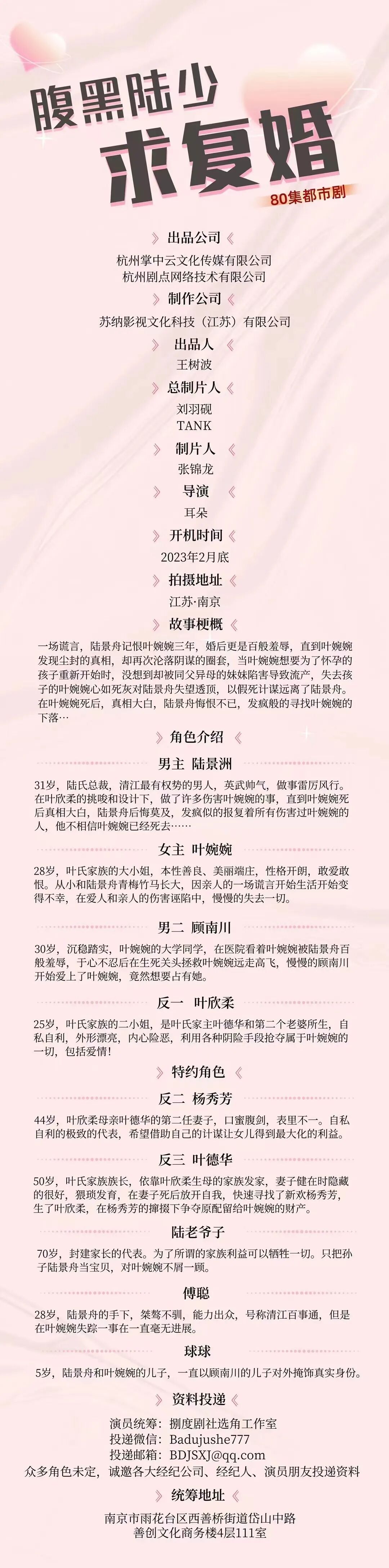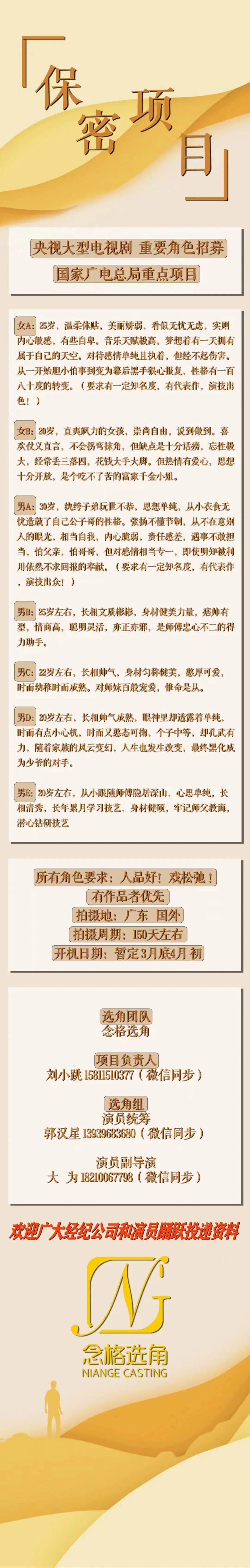 众多角色未定,诚邀各大经纪公司、经纪人、演员朋友投递资料。
