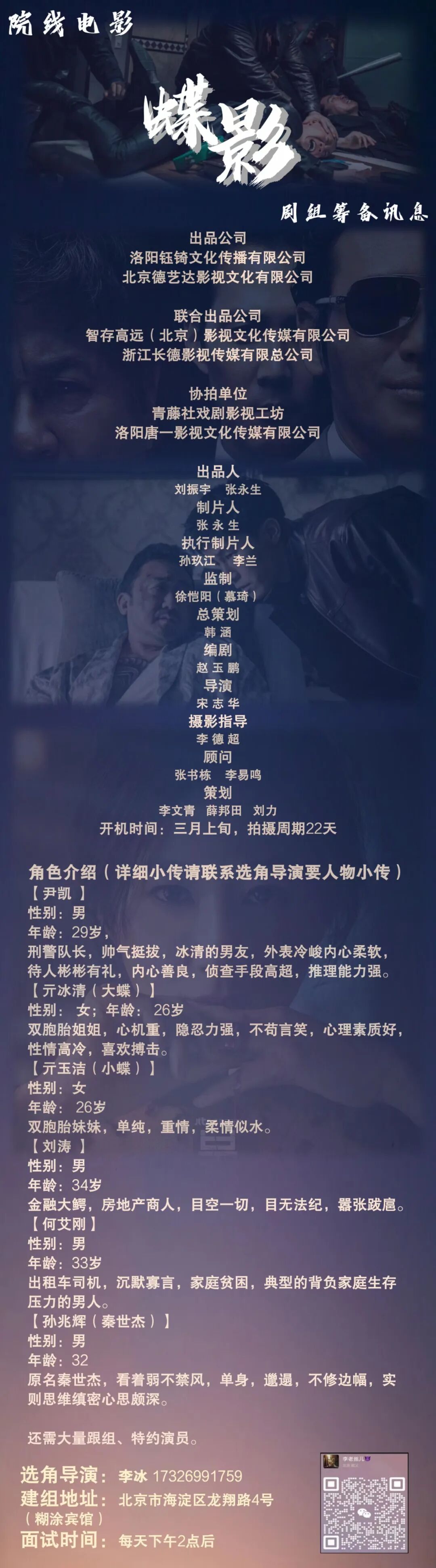 选角组演员统筹:郭汉星 13939683680(微信同步)