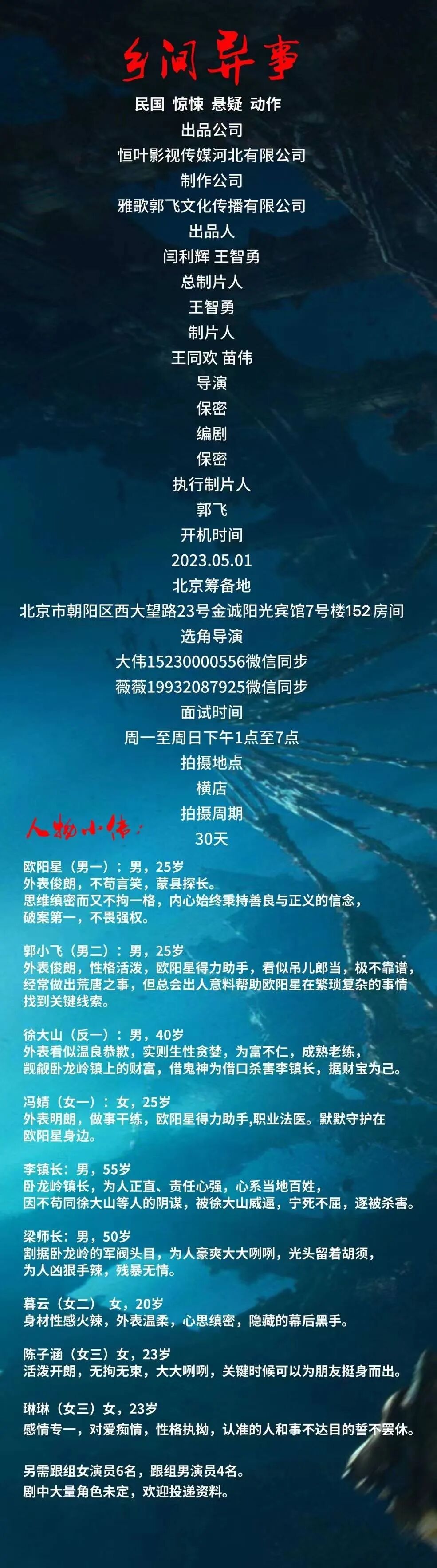 本栏目发布组讯由小编采集与业界共享,组讯如有变化请以实际情况为准。如果遇到剧组收费情况,请谨慎对待并私信官微@戏客Seeker,我们会公示问题组讯并及时处理。谢谢。