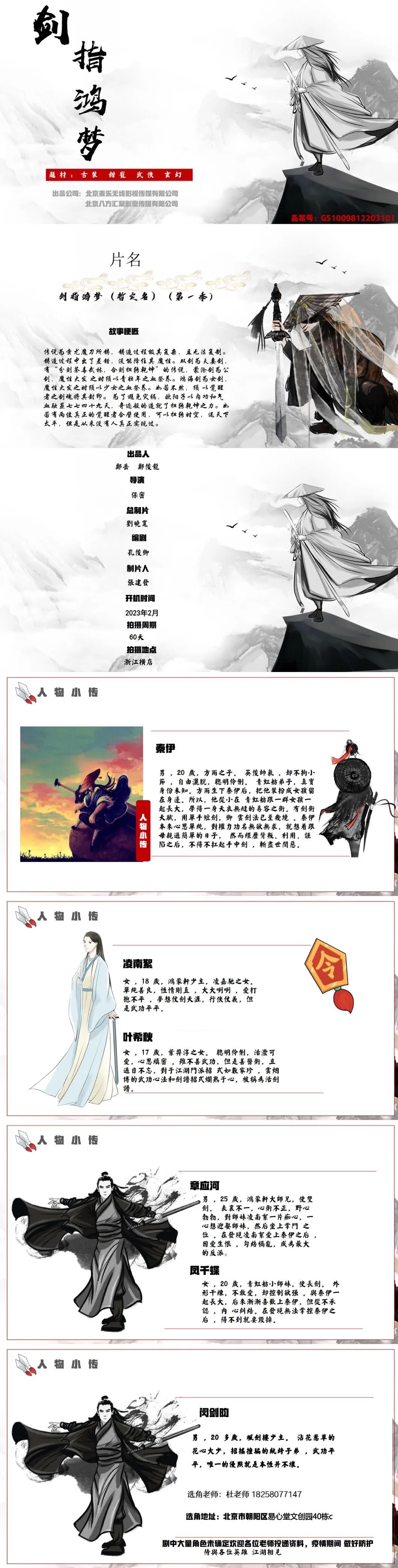 剧中大量角色未确定,欢迎各位老师投递资料,疫情期间待与各位英雄江湖相见。