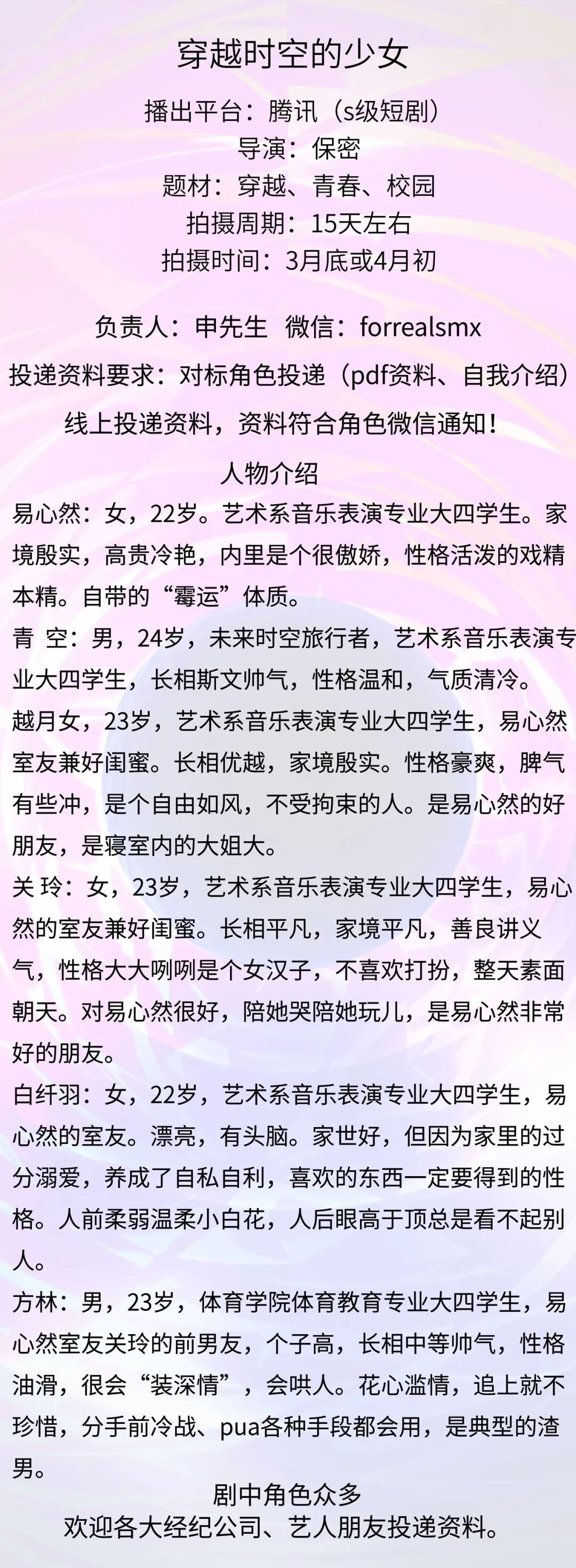 (演员投递)选角导演联系邮箱:362291101@qq.com