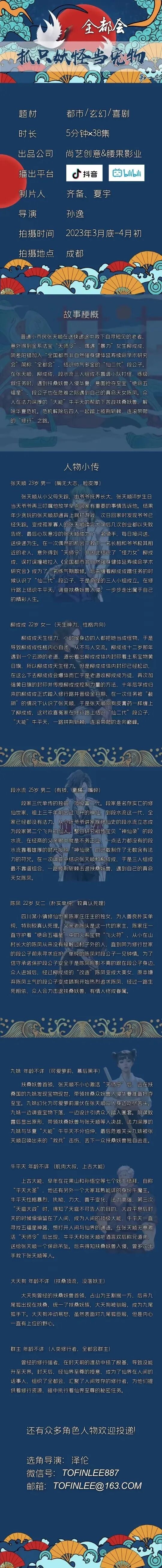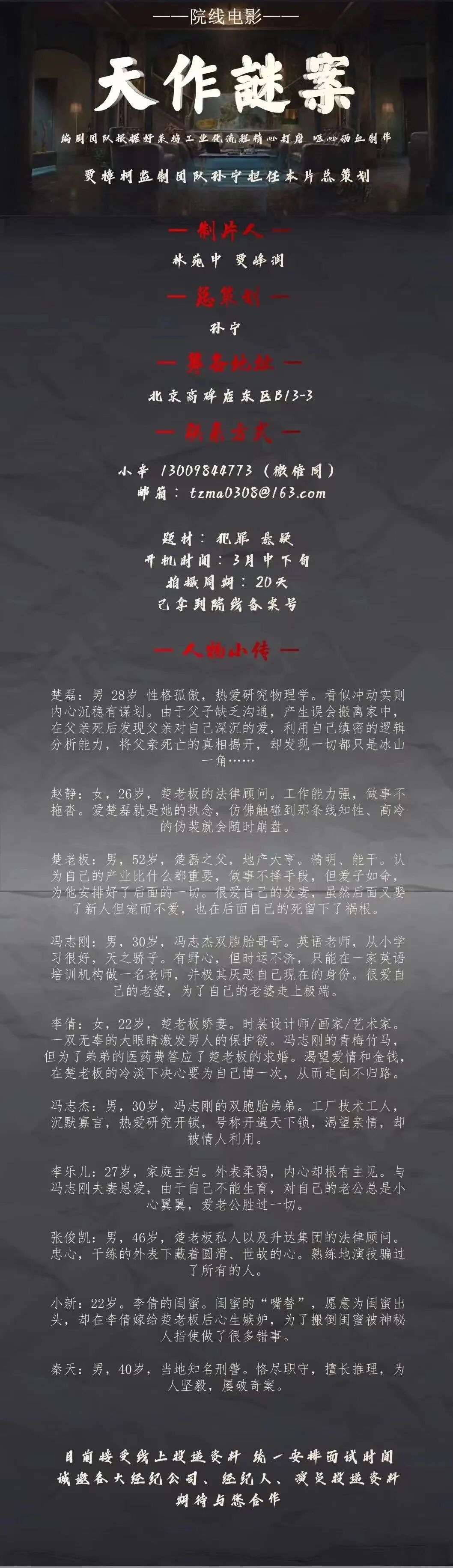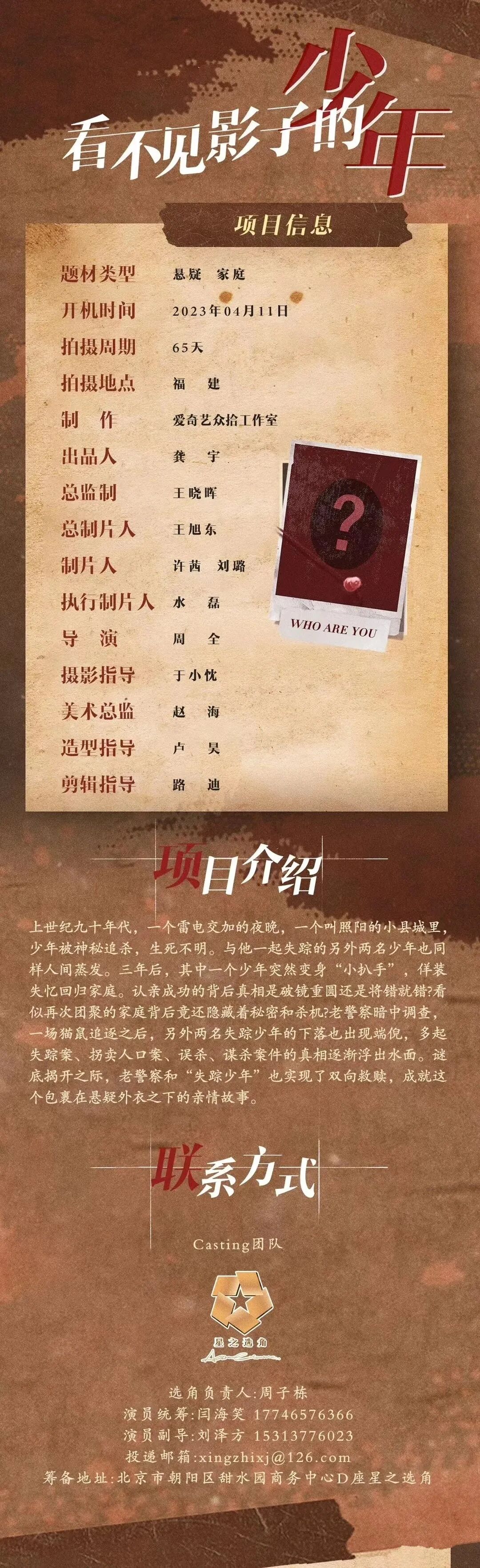 本栏目发布组讯由小编采集与业界共享,组讯如有变化请以实际情况为准。如果遇到剧组收费情况,请谨慎对待并私信官微@戏客Seeker,我们会公示问题组讯并及时处理。谢谢。