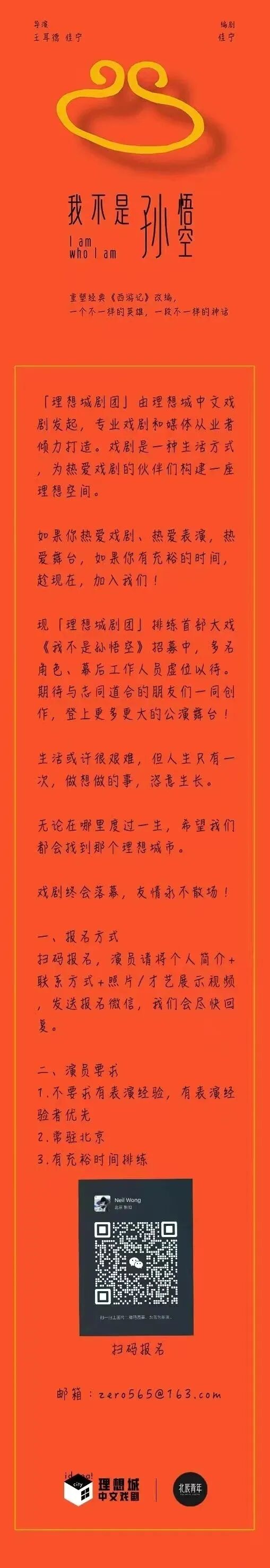 演员要求:不要求有表演经验,有表演经验者优先。常驻北京。有充裕时间排练
