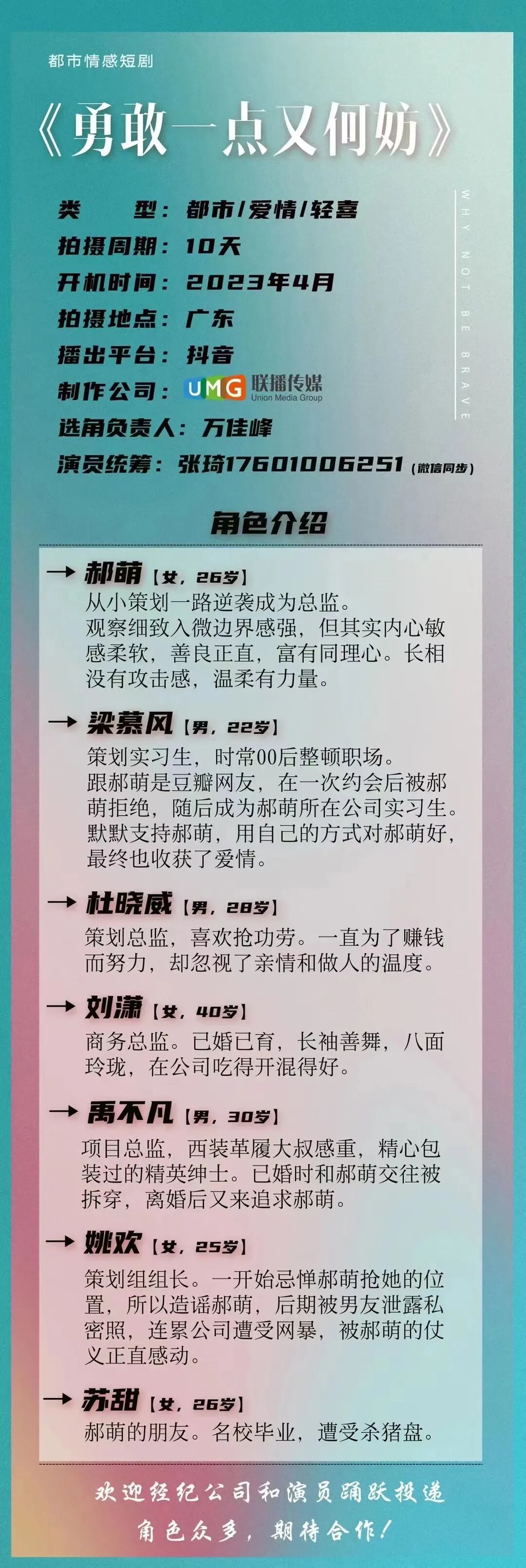 报名方式:演员请将个人简介联系方式+照片/才艺展示视频,发送报名微信,我们会尽快回复。