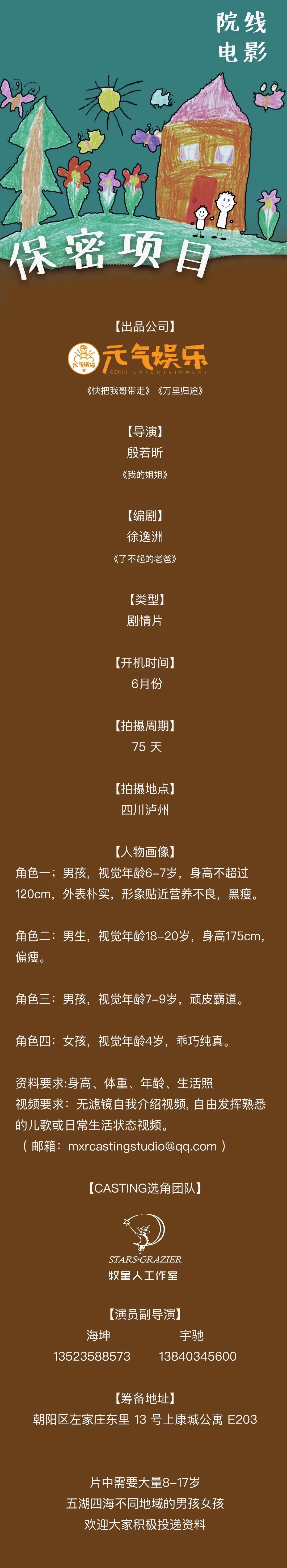 片中需要大量8-17岁,五湖四海不同地域的男孩女孩,欢迎大家积极投递资料。