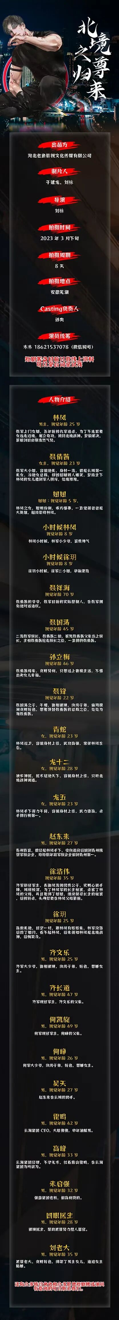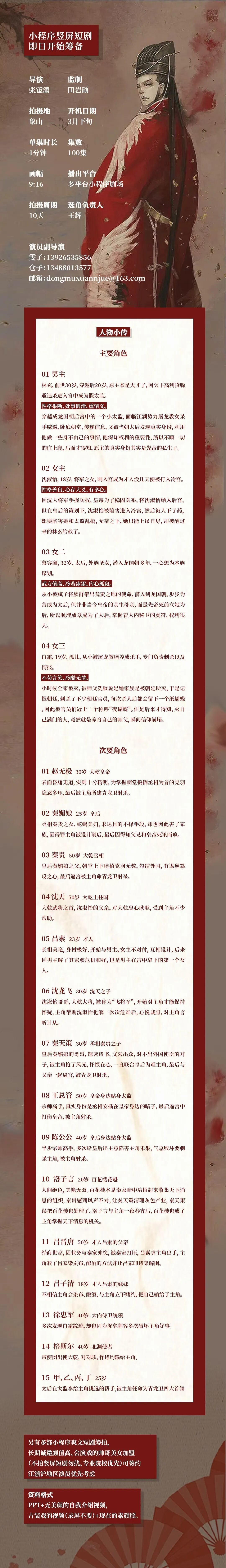剧中角色众多,欢迎各大经纪公司及独立演员投放资料。