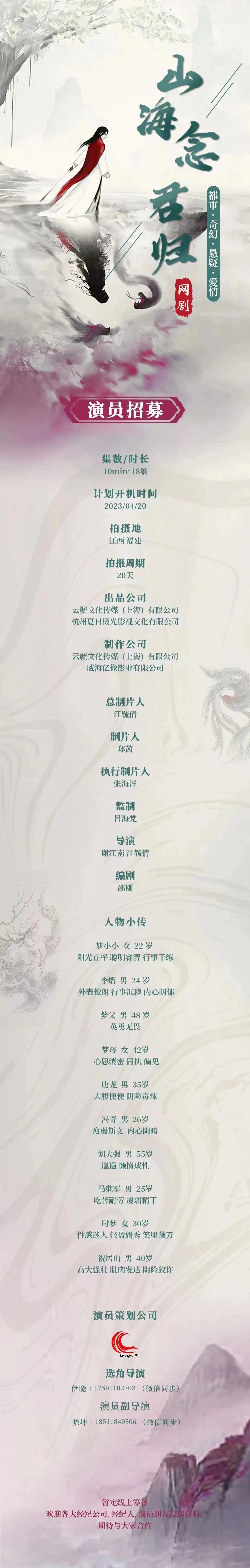 暂定线上筹备,欢迎各大经纪公司,经纪人,演员朋友投递资料,期待与大家合作。