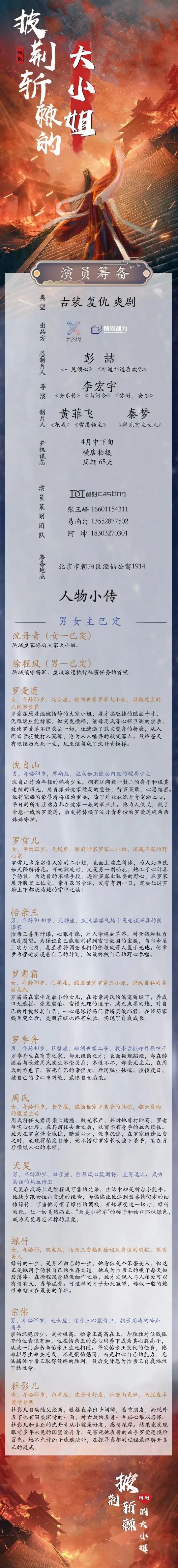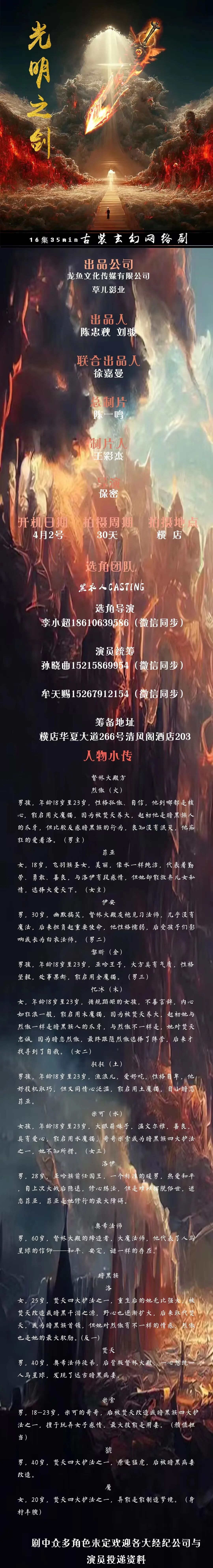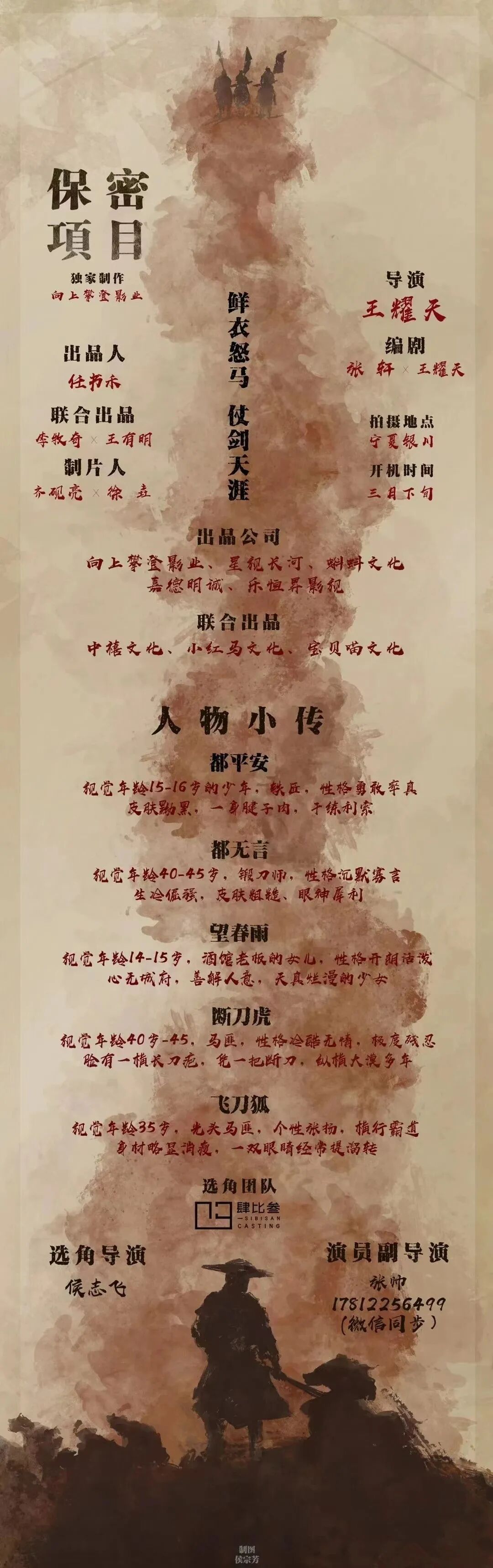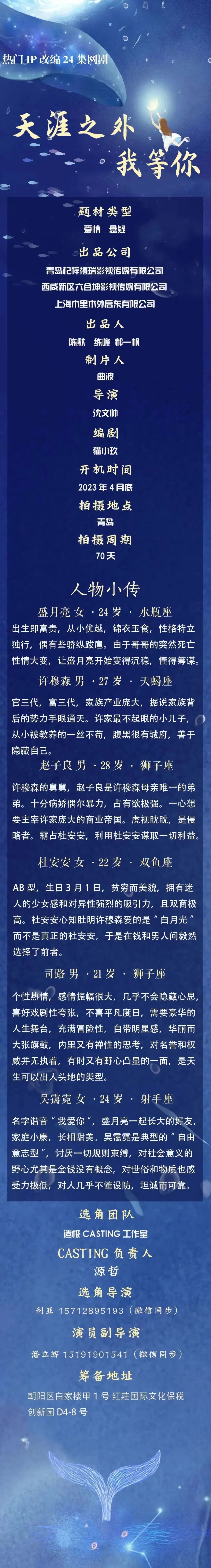 剧中众多角色未定,欢迎各大经纪公司及演员朋友投递资料