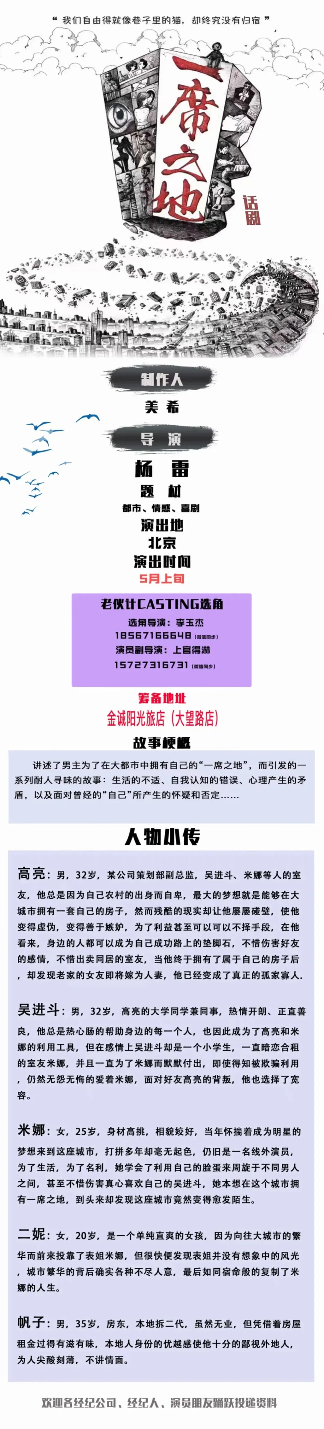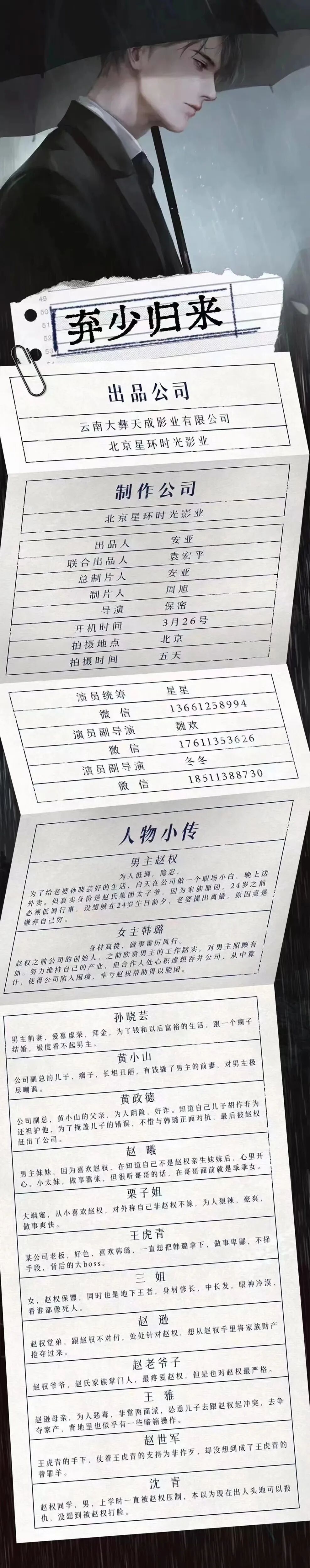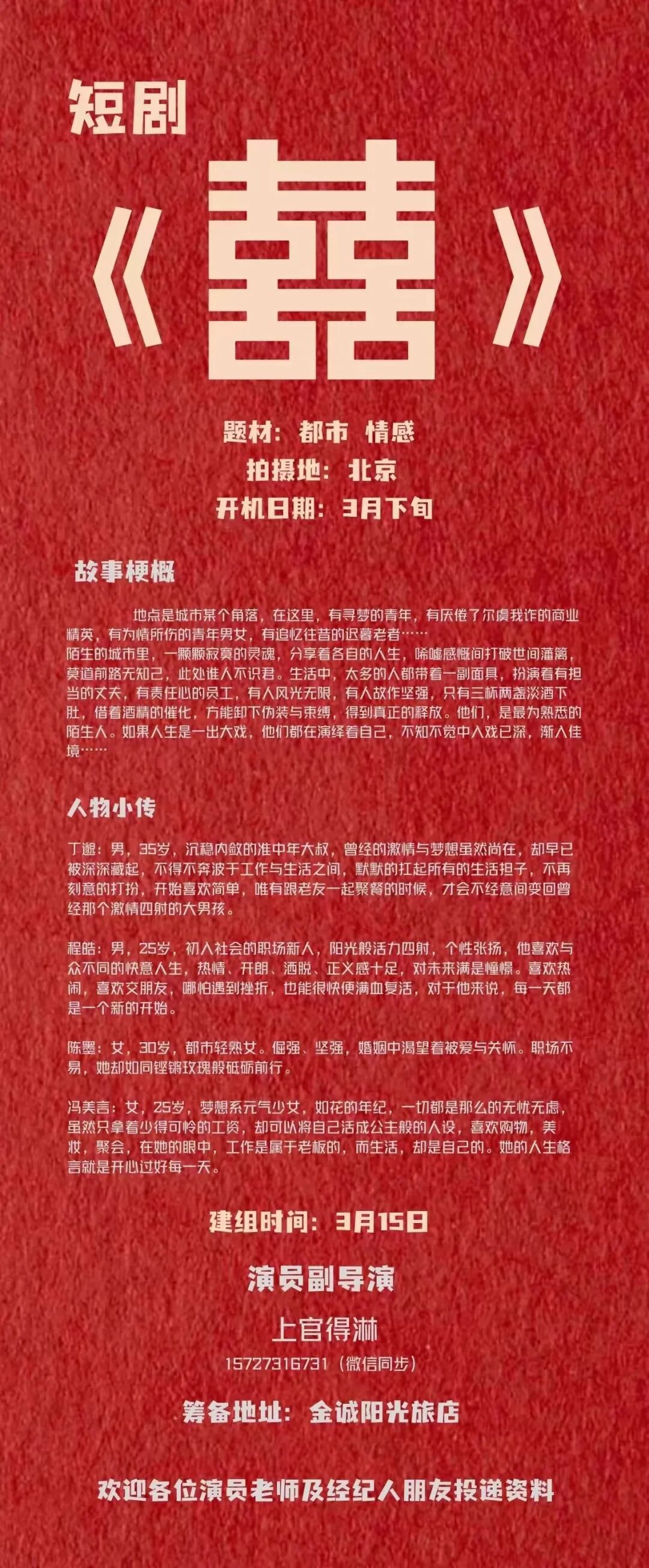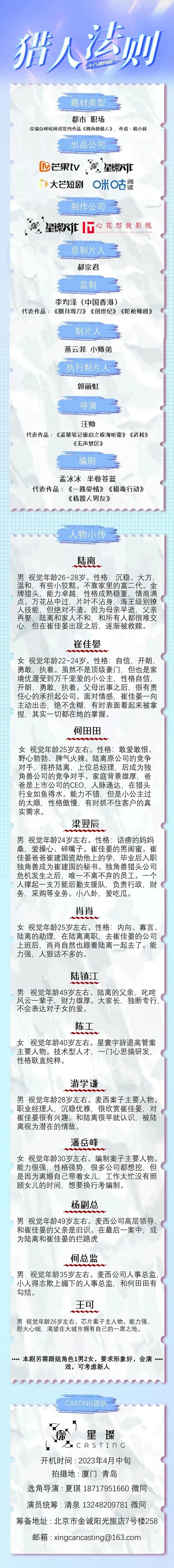 剧中众多角色未定,欢迎各大经纪公司及演员朋友投递资料