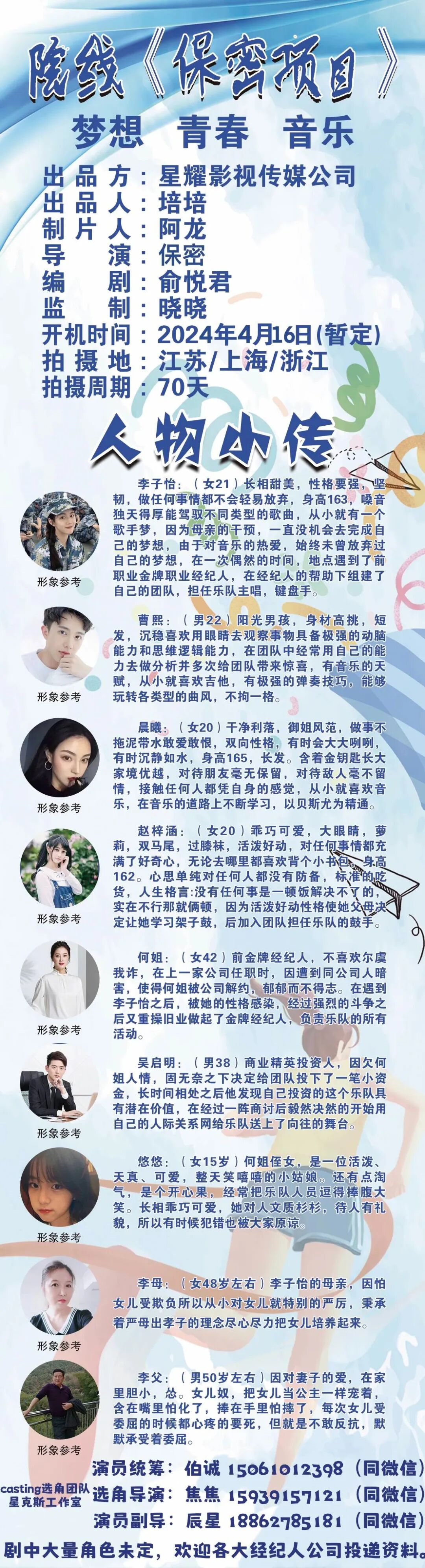 剧中大量角色未定,欢迎各大经纪人公司投递资料