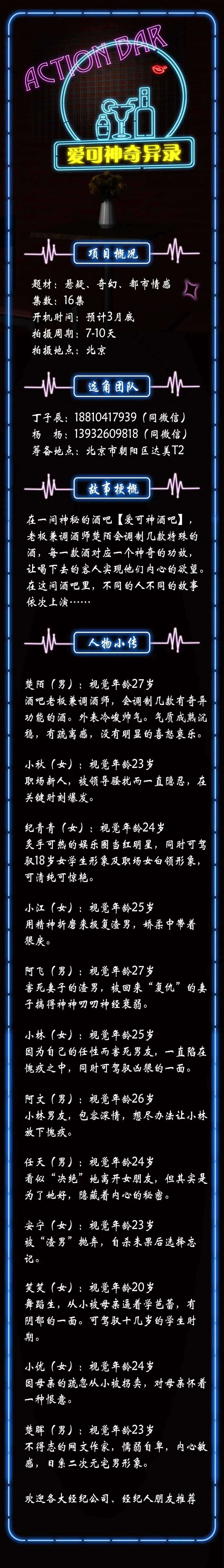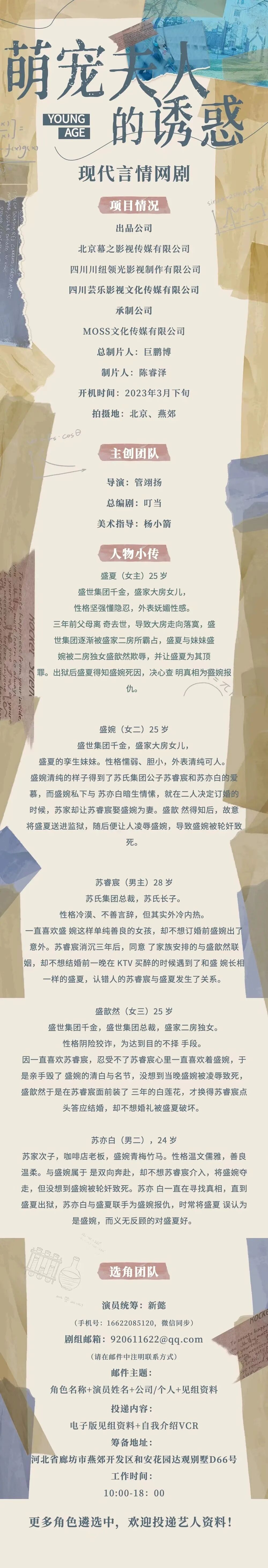 众多角色未定,欢迎各大经纪公司以及演员老师们洽谈合作