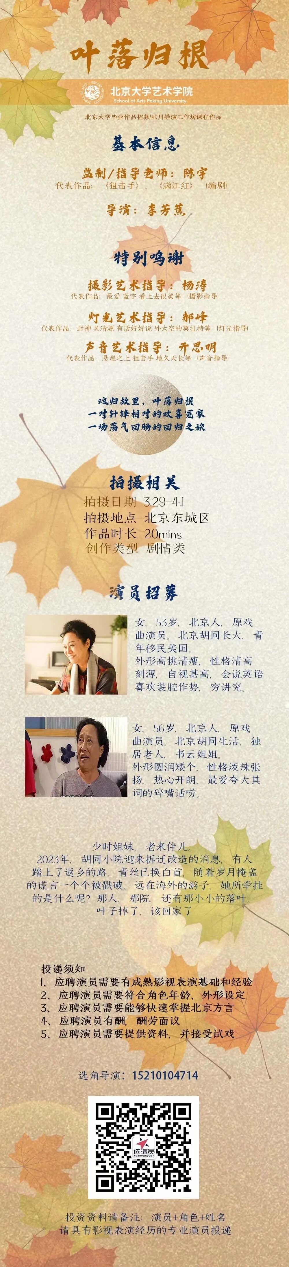 投资资料请备注:演员+角色+姓名,请具有影视表演经历的专业演员投递。
