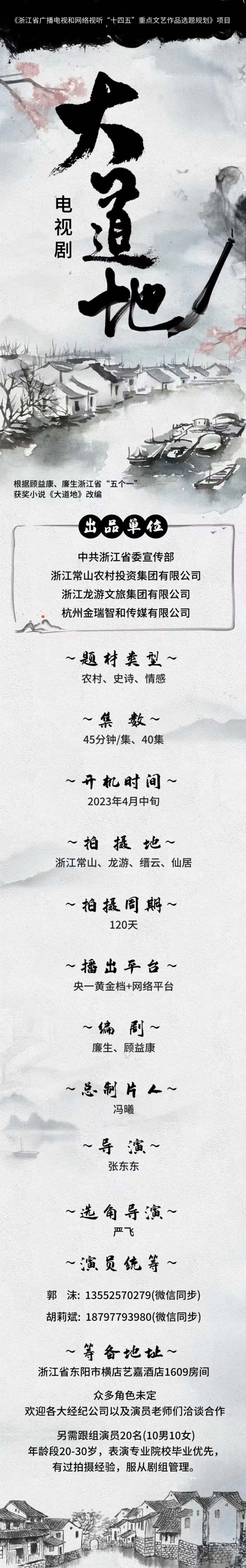 另需跟组演员20名(10男10女)年龄段20-30岁,表演专业院校毕业优先,有过拍摄经验,服从剧组管理。