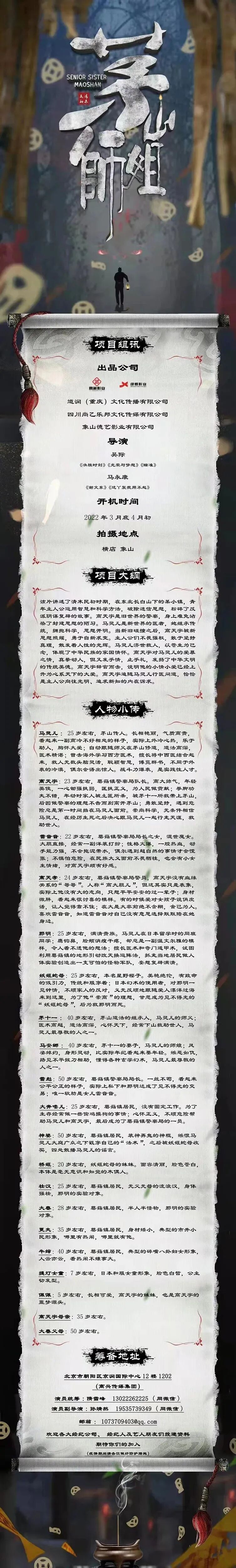 选角负责人:程枫 13436668705(微信同步)