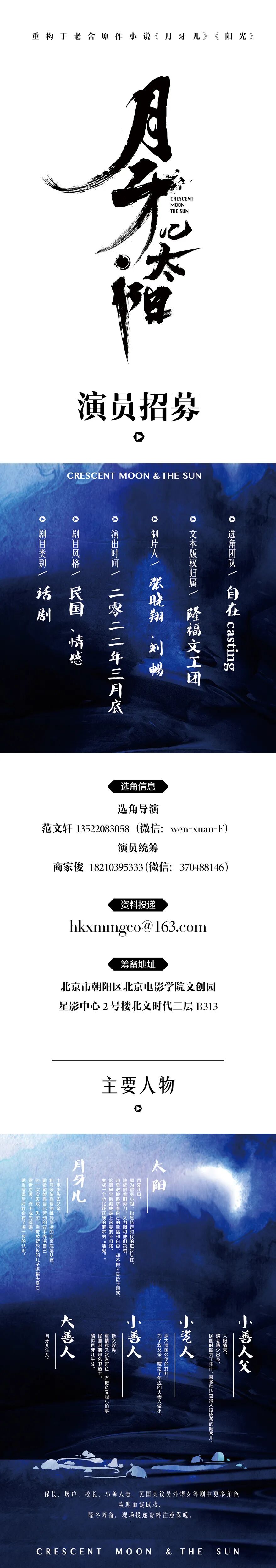 民国情感话剧《月牙儿·太阳》【更新筹备地址】
