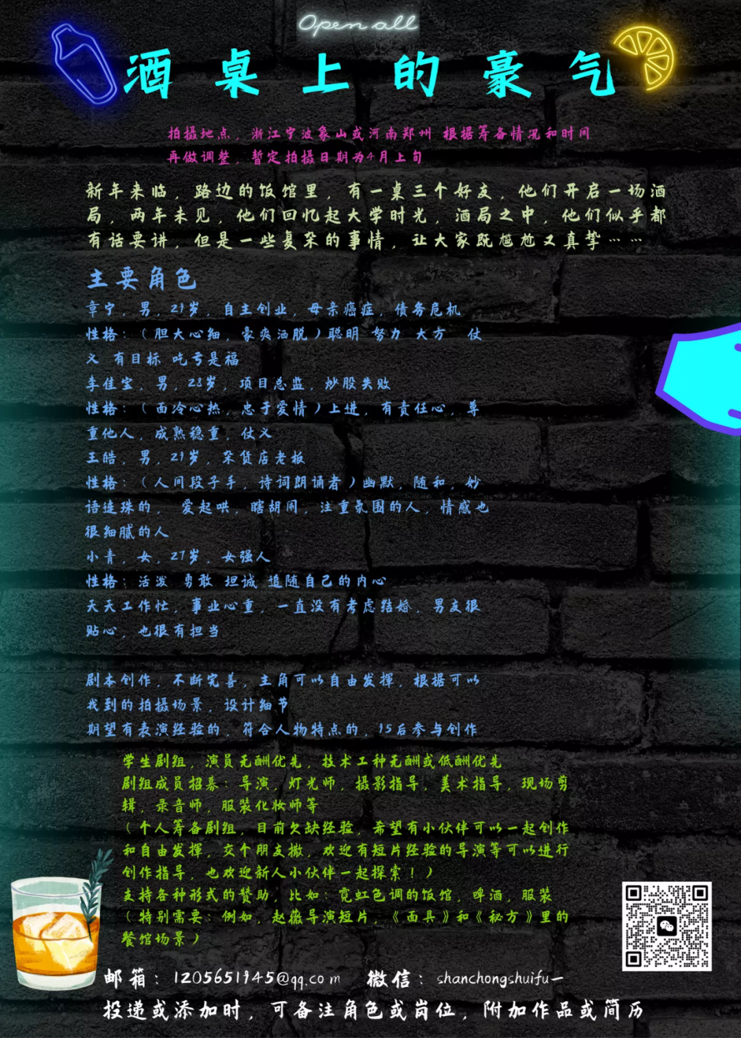 本栏目发布组讯由小编采集与业界共享,组讯如有变化请以实际情况为准。如果遇到剧组收费情况,请谨慎对待并私信官微@戏客Seeker,我们会公示问题组讯并及时处理。谢谢。