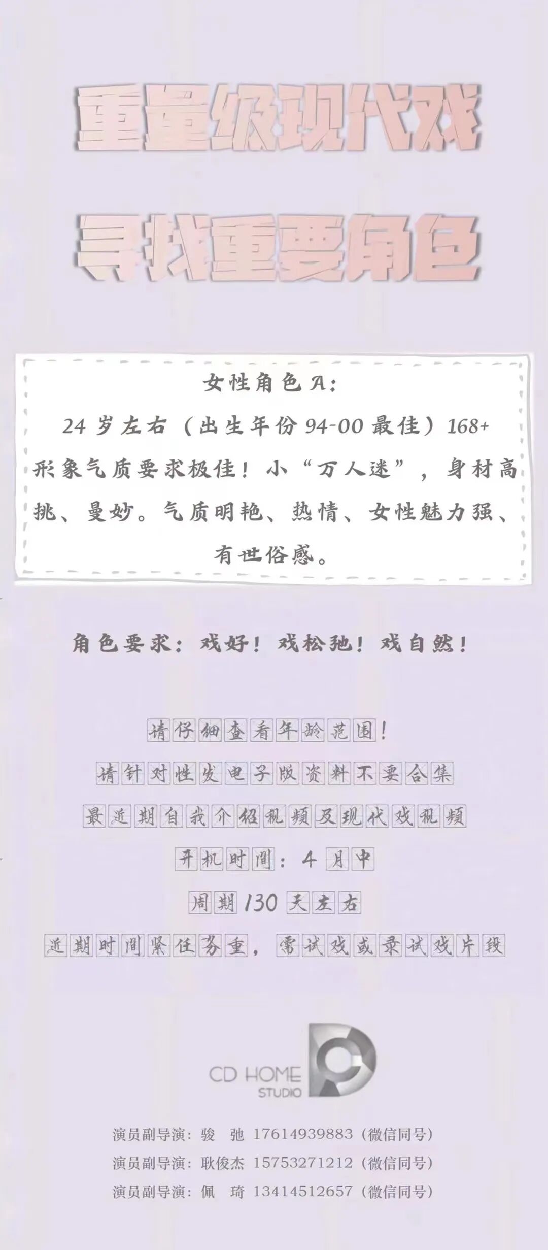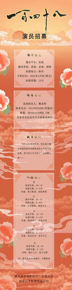 选角联系人:魏老师 18133935286(同微信)