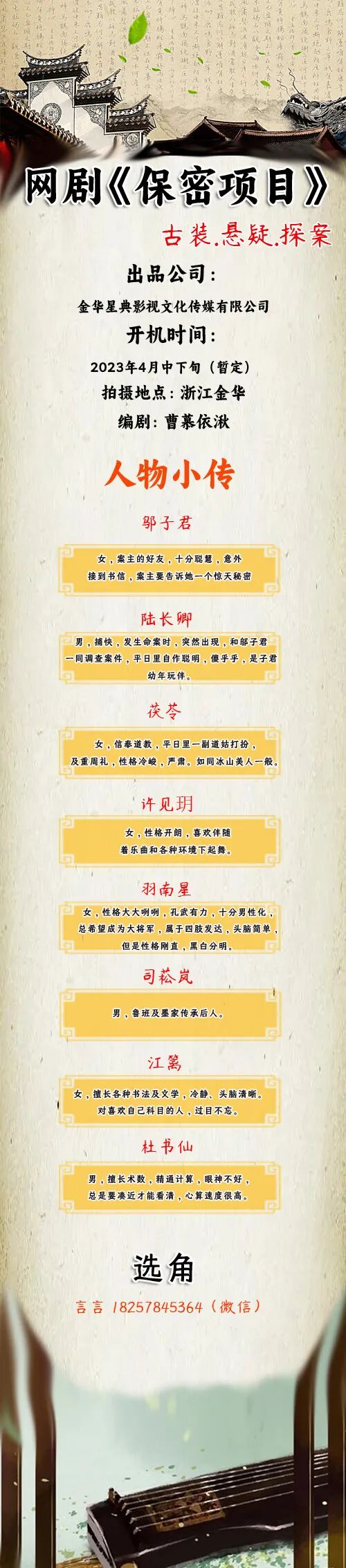 本栏目发布组讯由小编采集与业界共享,组讯如有变化请以实际情况为准。如果遇到剧组收费情况,请谨慎对待并私信官微@戏客Seeker,我们会公示问题组讯并及时处理。谢谢。