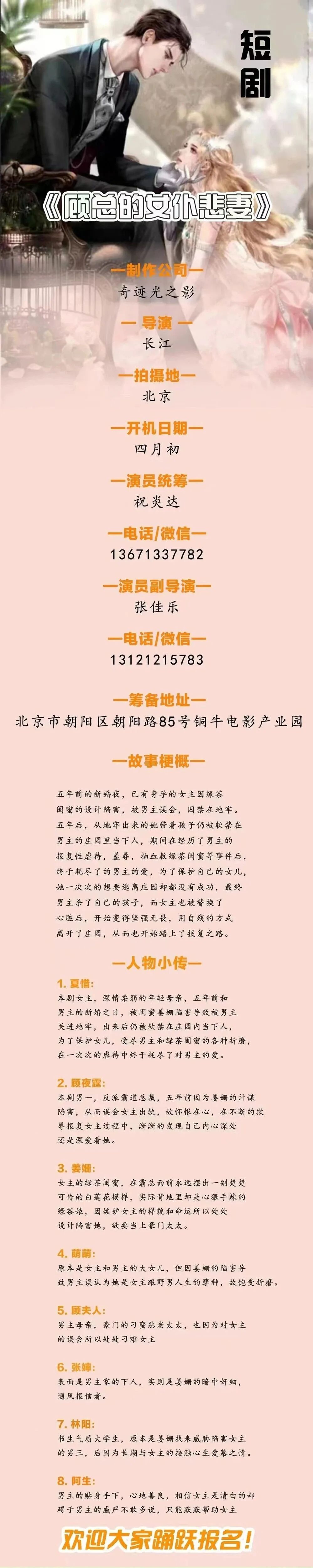 演员统筹:祝炎达 13671337782(微信同步)