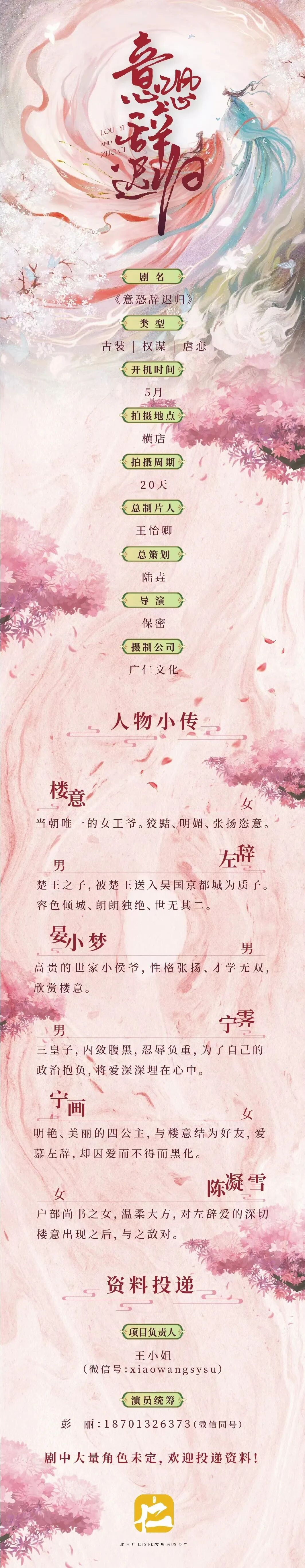 本栏目发布组讯由小编采集与业界共享,组讯如有变化请以实际情况为准。如果遇到剧组收费情况,请谨慎对待并私信官微@戏客Seeker,我们会公示问题组讯并及时处理。谢谢。