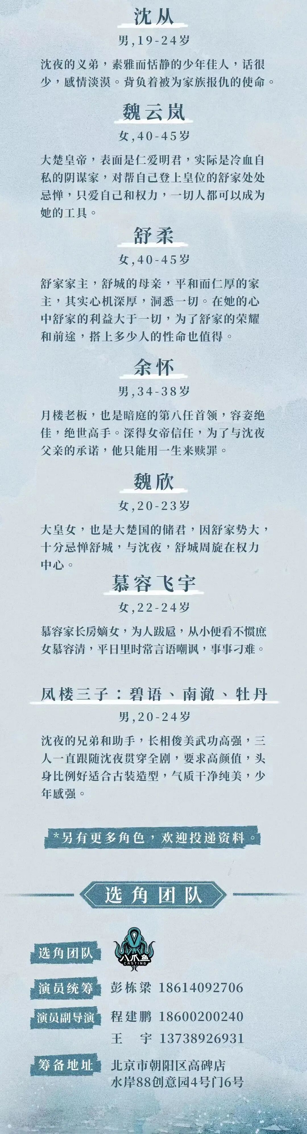 剧中众多角色未定,欢迎各大公司和个人投递简历