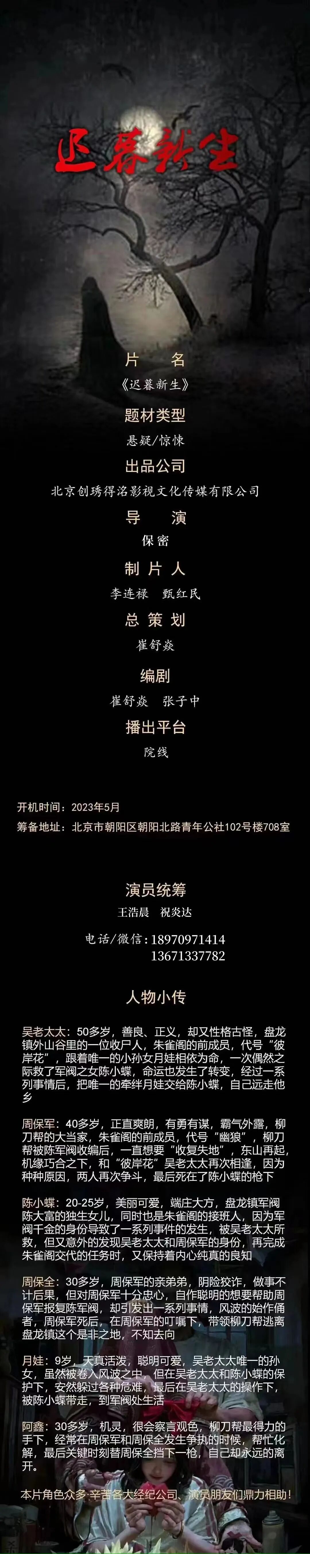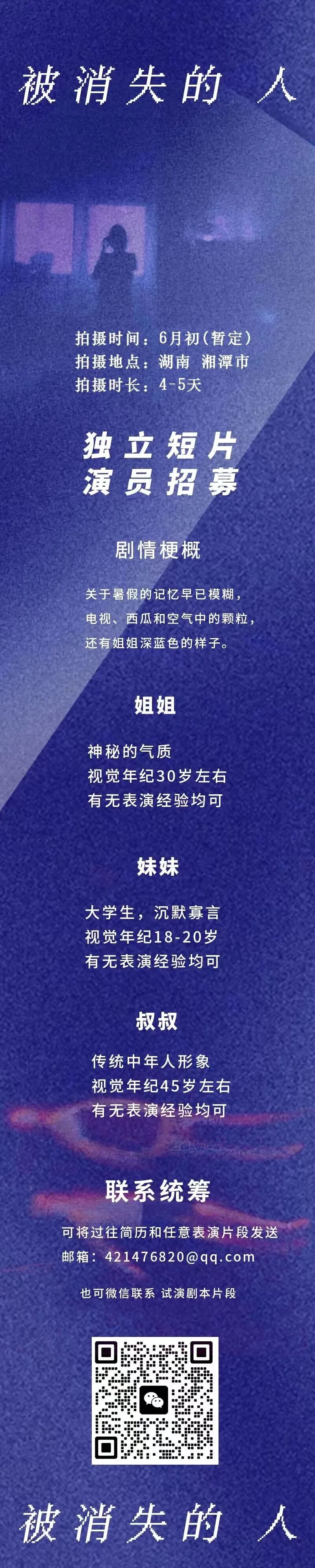 本栏目发布组讯由小编采集与业界共享,组讯如有变化请以实际情况为准。如果遇到剧组收费情况,请谨慎对待并私信官微@戏客Seeker,我们会公示问题组讯并及时处理。谢谢。