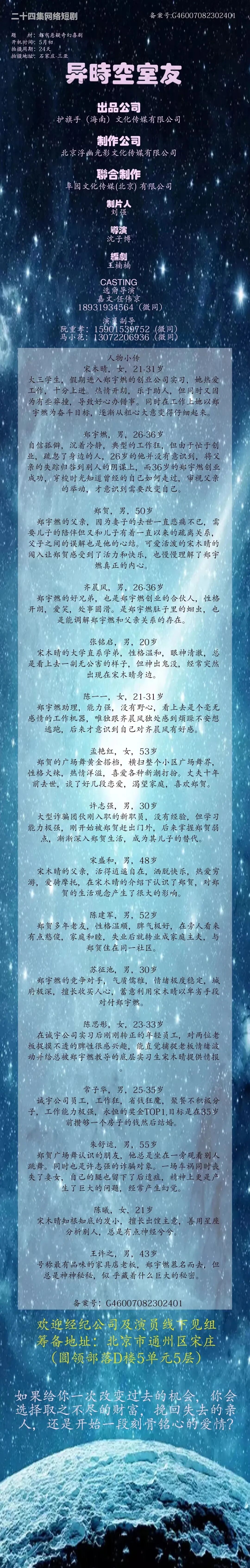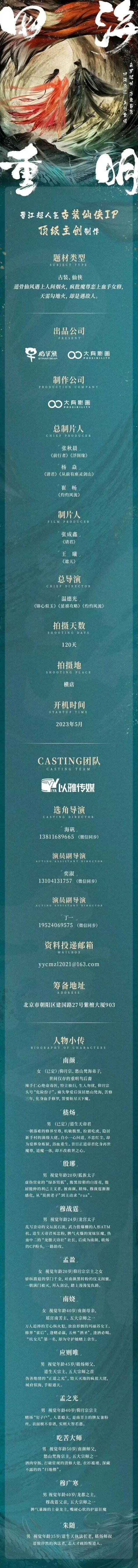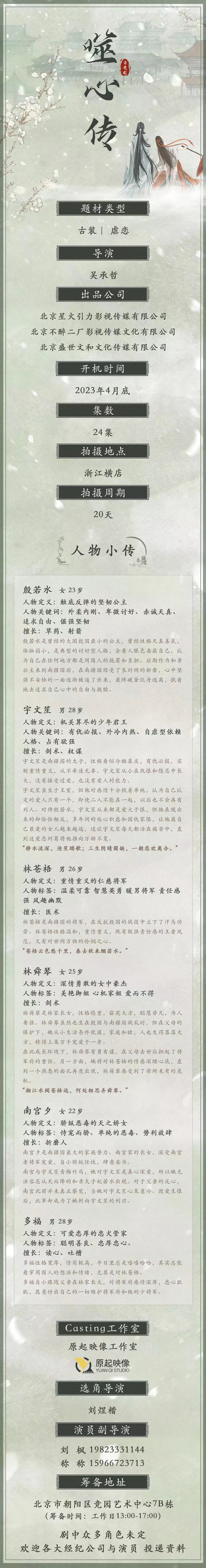 剧中众多角色未定,欢迎各大经纪公司与演员投递资料。