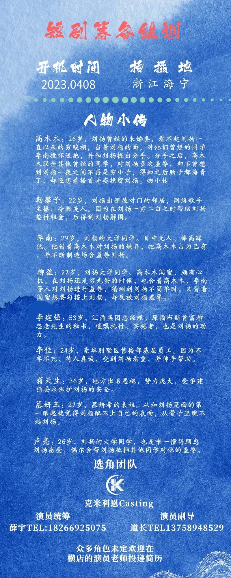 选角导演:嘉文-任伟京 18931934564(微信同步)
