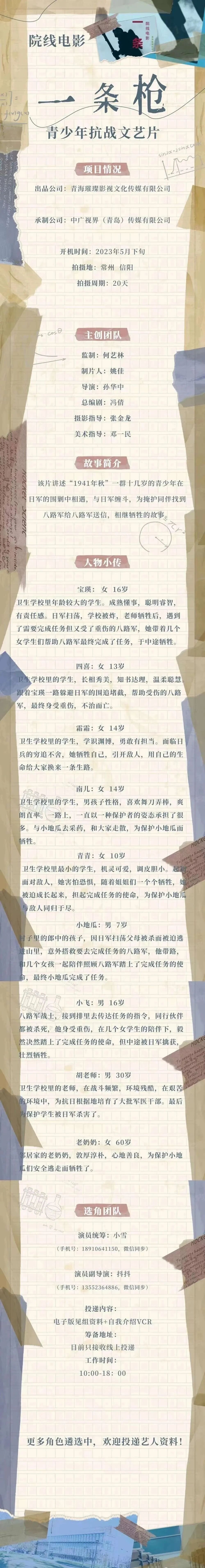 剧中还有大量角色,全国各地演员老师皆可投递资料,欢迎各位老师踊跃报名!