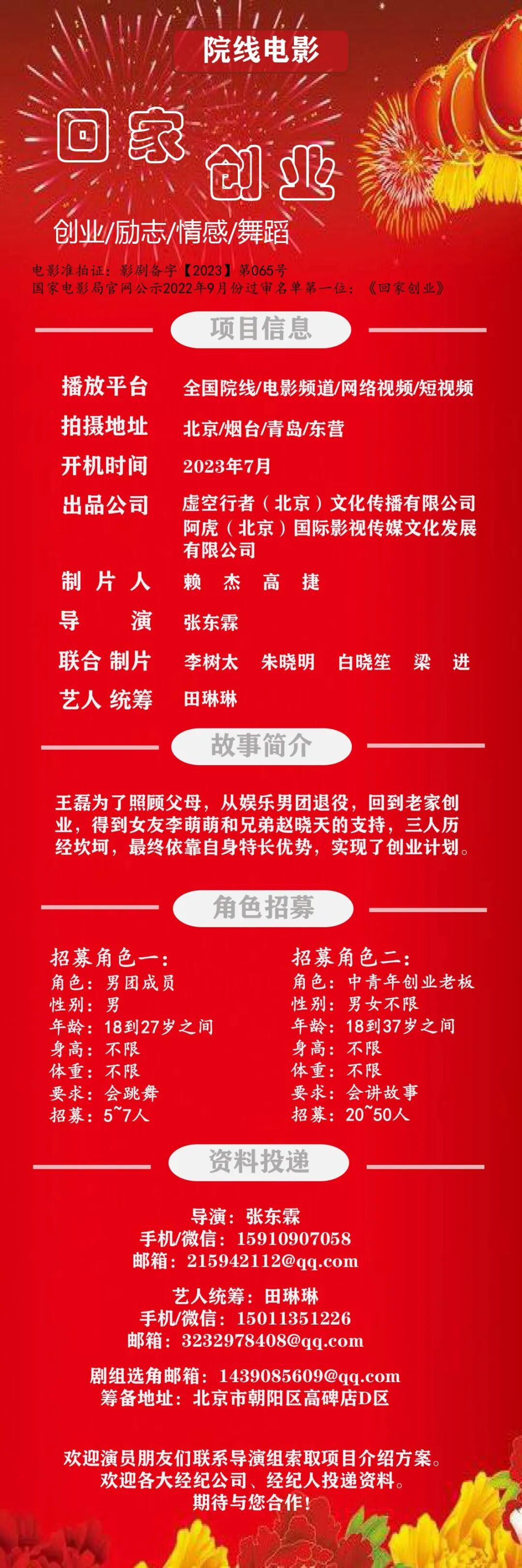 欢迎演员朋友们联系导演组索取项目介绍方案。