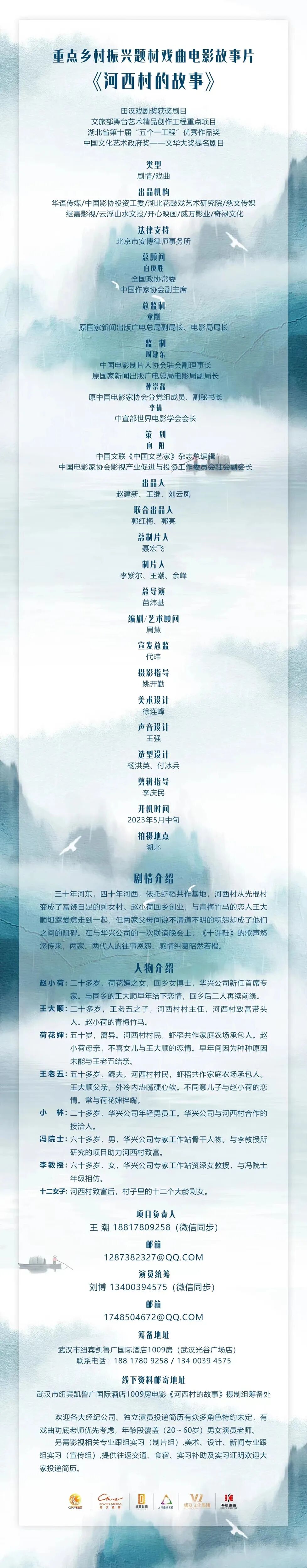 线下资料邮寄地址:武汉市纽宾凯鲁广国际酒店1009房电影《河西村的故事》摄制组筹备处