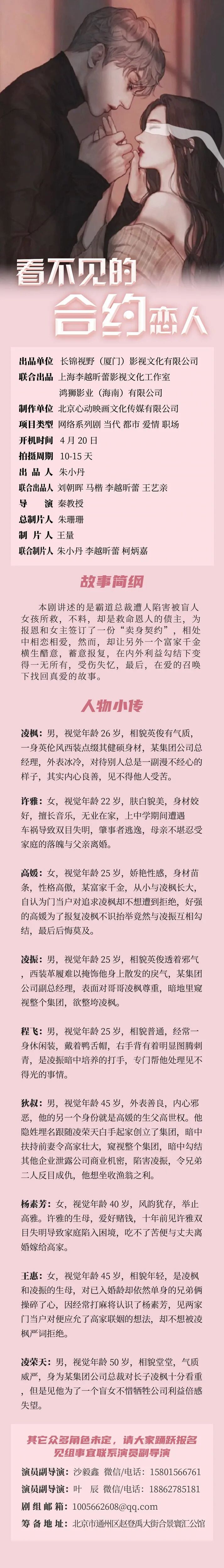 本栏目发布组讯由小编采集与业界共享,组讯如有变化请以实际情况为准。如果遇到剧组收费情况,请谨慎对待并私信官微@戏客Seeker,我们会公示问题组讯并及时处理。谢谢。