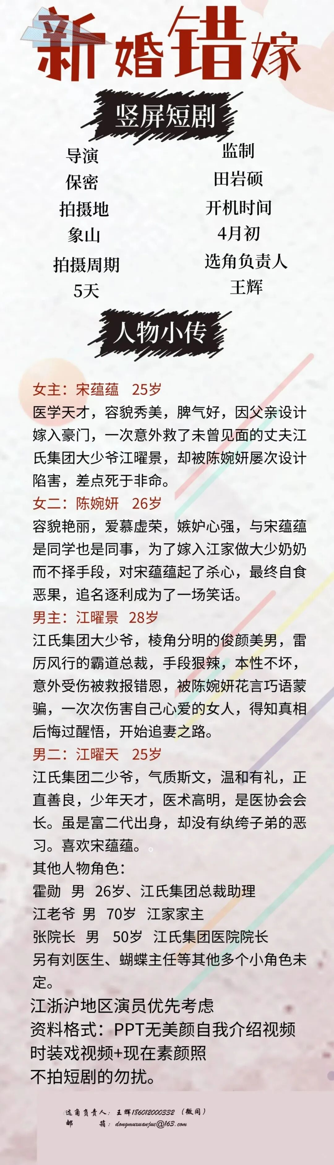 其它众多角色未定,请大家踊跃报名,见组事宜联系演员副导演。