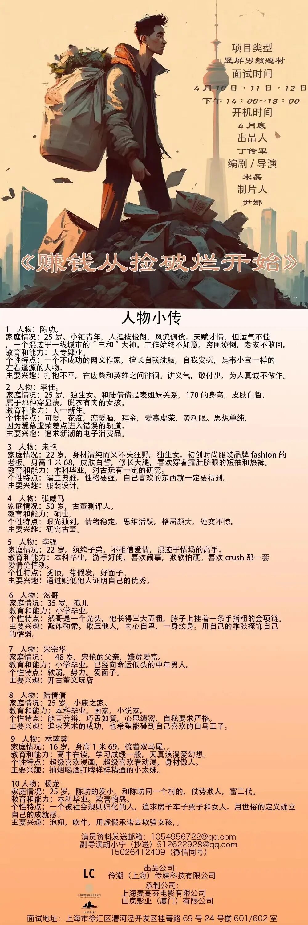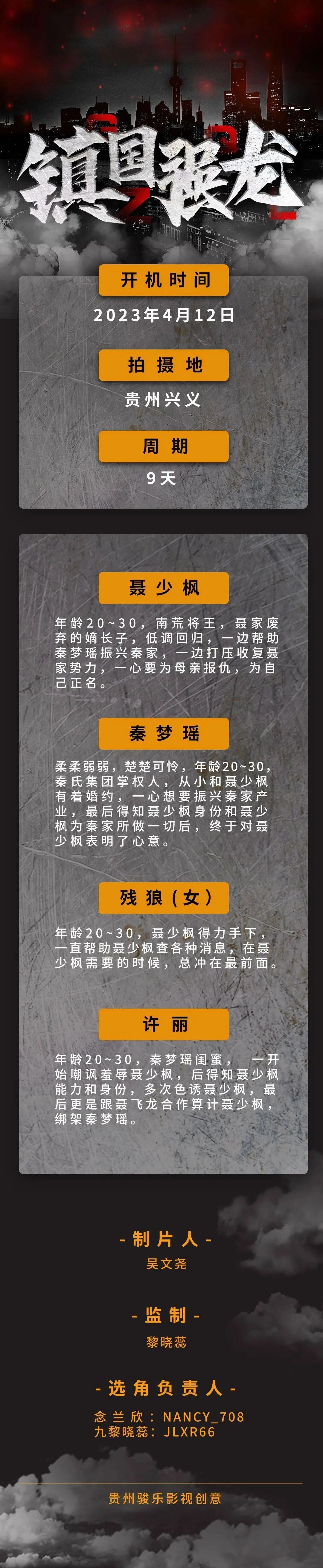 本栏目发布组讯由小编采集与业界共享,组讯如有变化请以实际情况为准。如果遇到剧组收费情况,请谨慎对待并私信官微@戏客Seeker,我们会公示问题组讯并及时处理。谢谢。