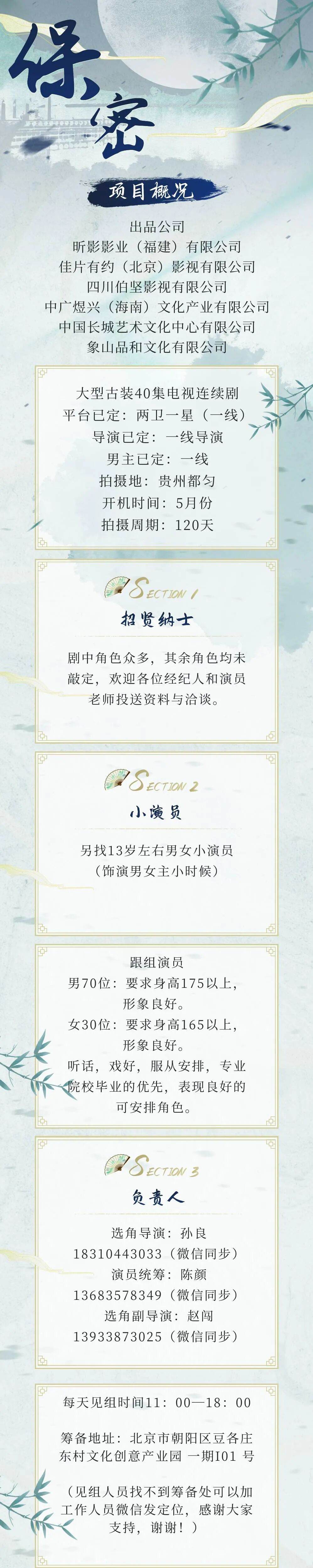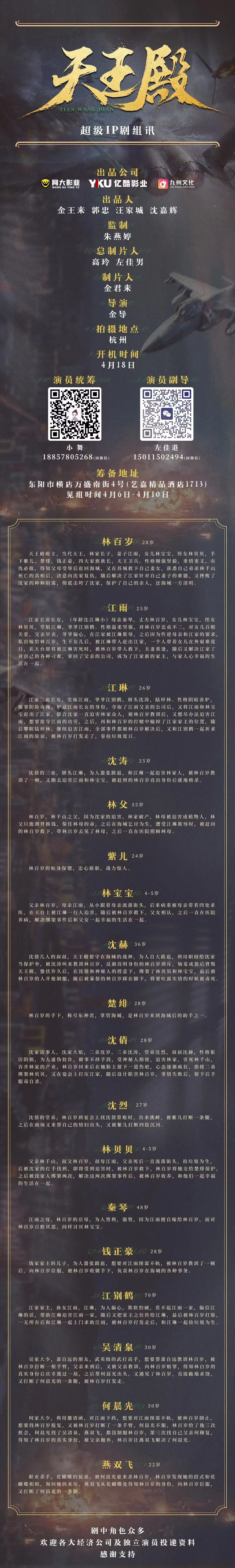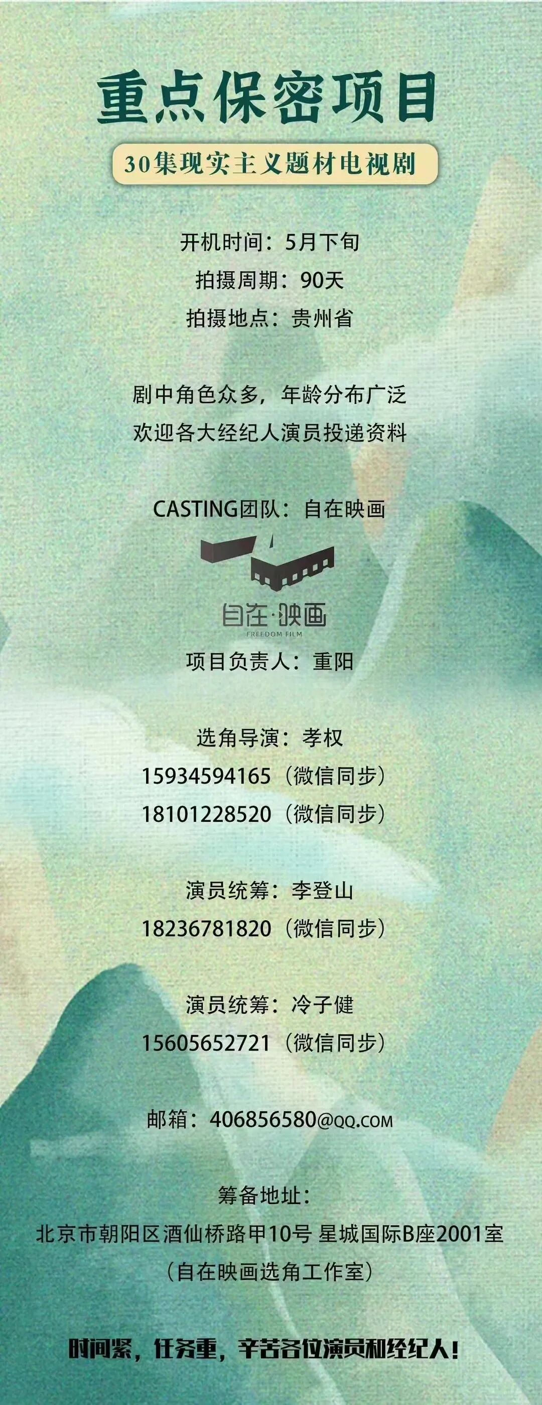 剧中各个年龄段角色众多,欢迎经纪人及演员朋友们踊跃报名。