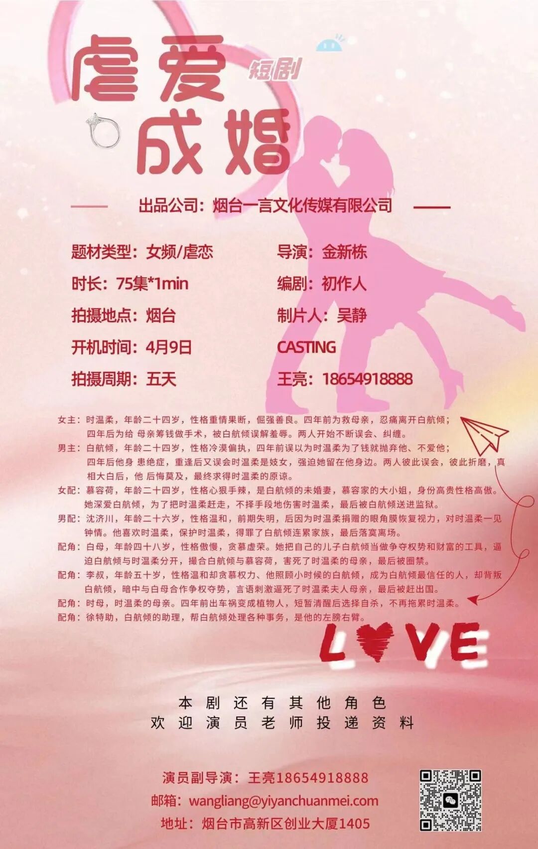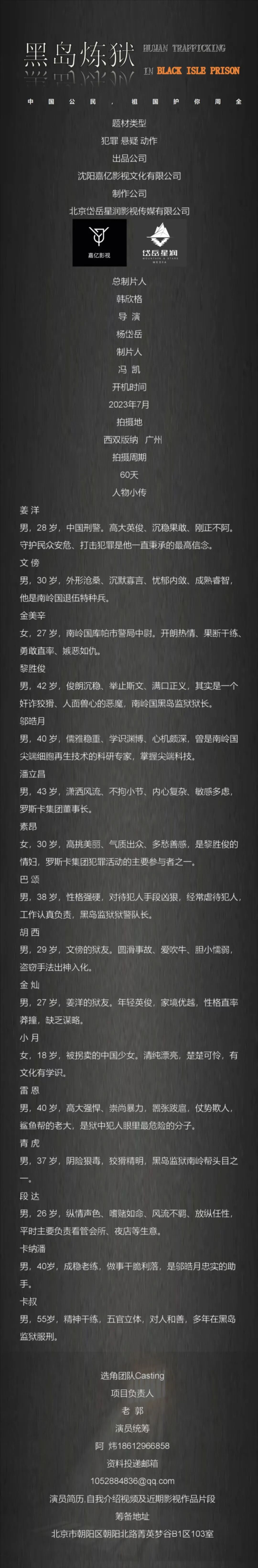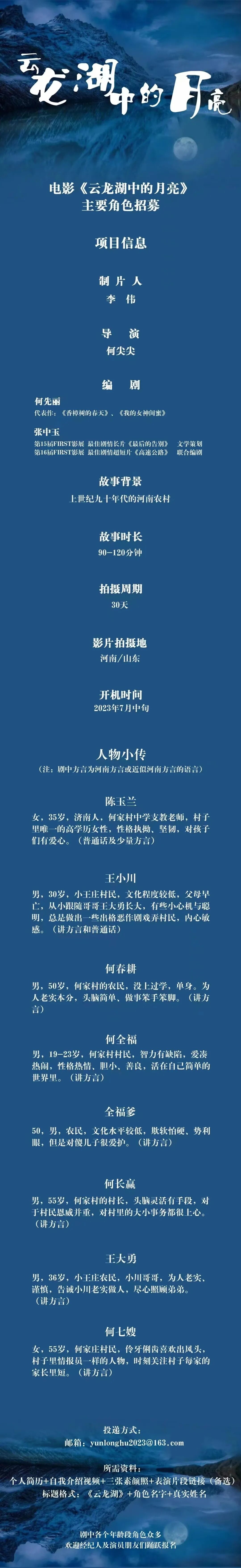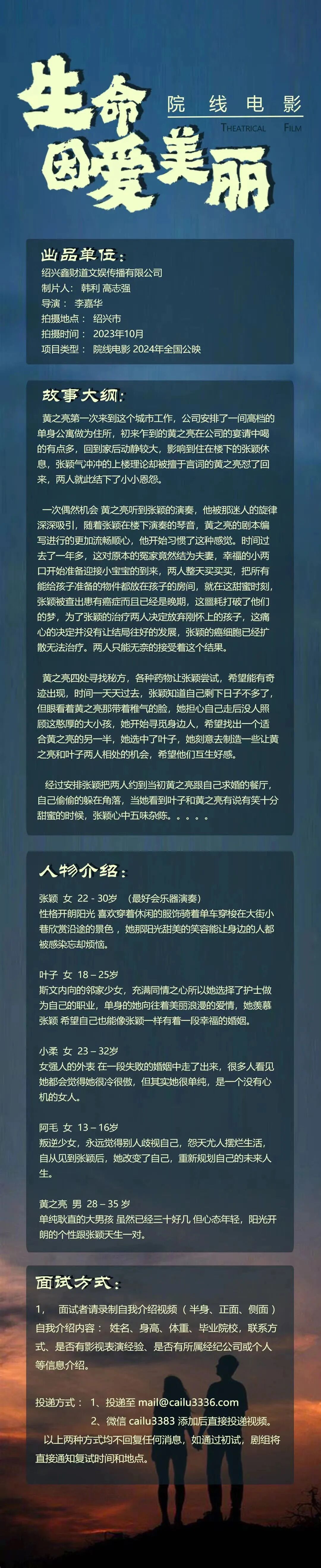 剧中各个年龄段角色众多,欢迎经纪人及演员朋友们踊跃报名。
