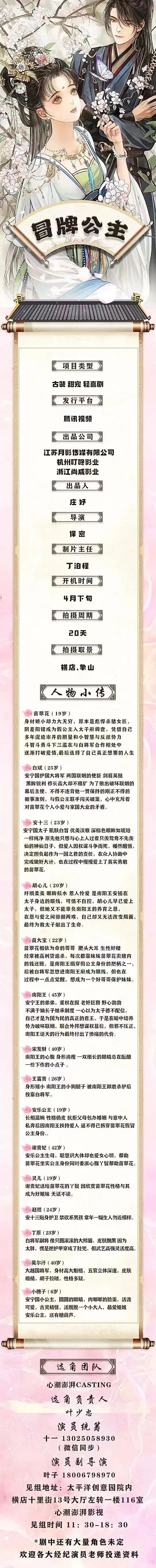 (来信请统一格式为“演员名+自我介绍视频+角色名+PPT/PDF资料)剧中还有大量角色欢迎投递。