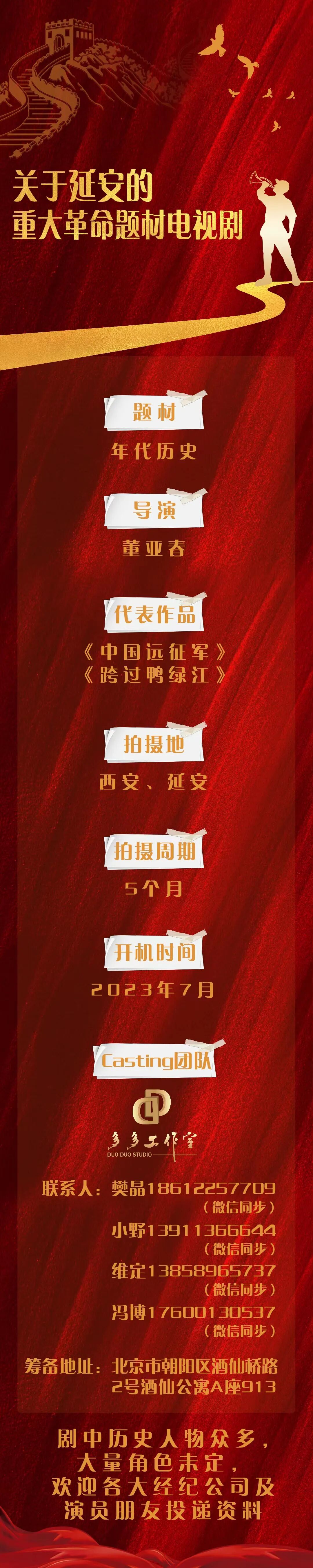 剧中历史人物众多,大量角色未定,欢迎各大经纪公司及演员朋友投递资料。