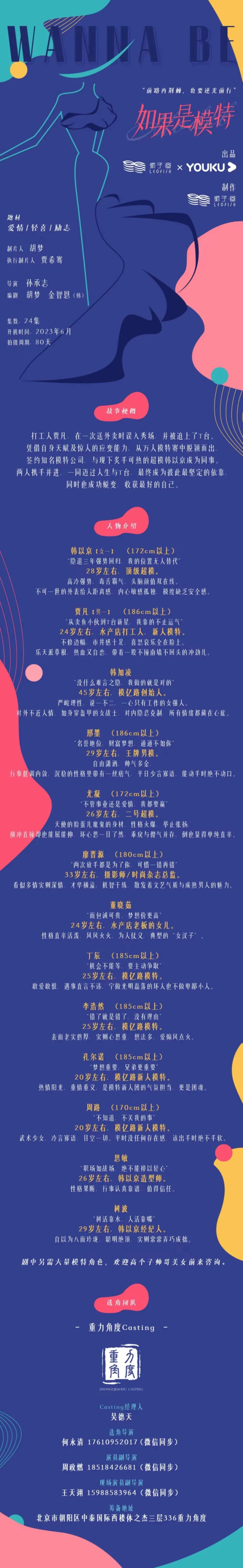选角导演:霍飞 18610855605(微信同步)