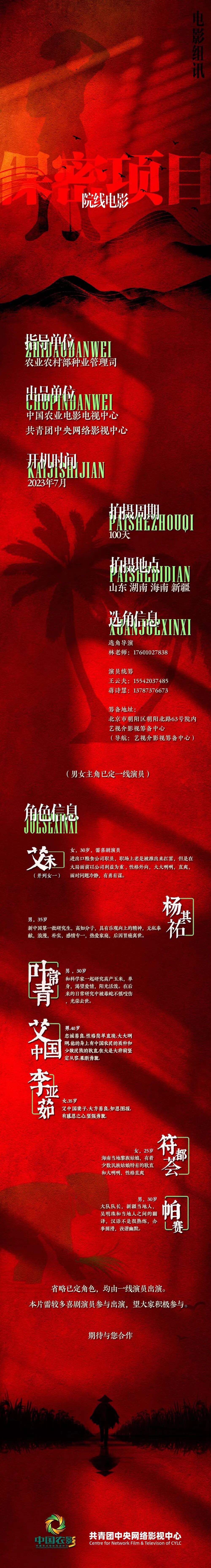 选角导演:何永清 17610952017(微信同步)