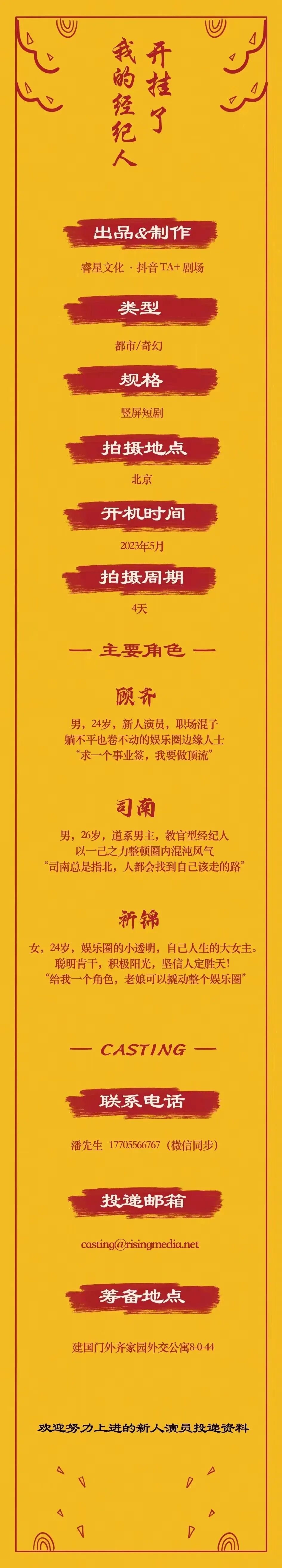 选角联系人:潘先生 17705566767(微信同步)