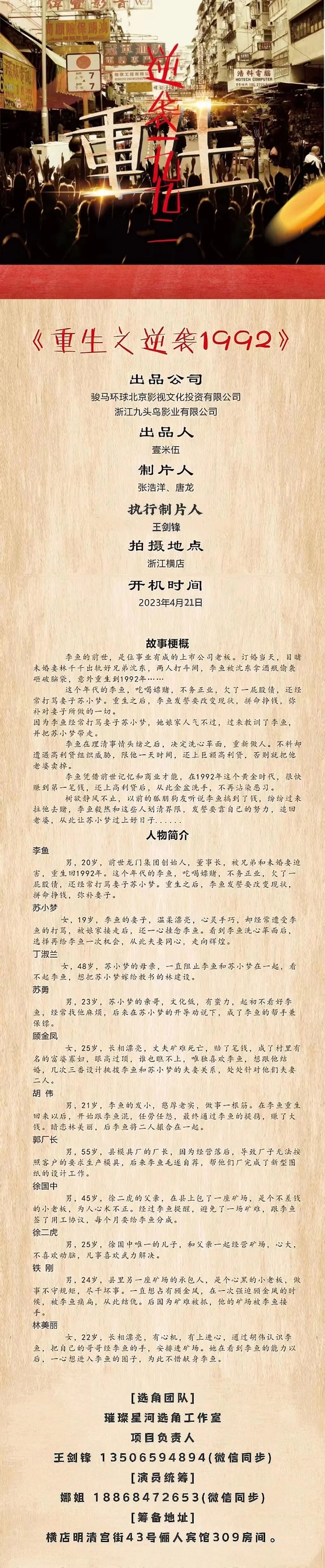 本栏目发布组讯由小编采集与业界共享,组讯如有变化请以实际情况为准。如果遇到剧组收费情况,请谨慎对待并私信官微@戏客Seeker,我们会公示问题组讯并及时处理。谢谢。