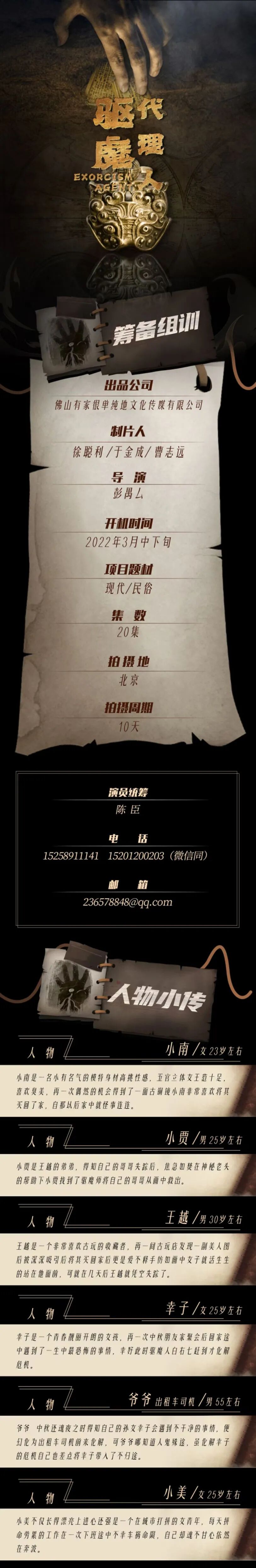 本栏目发布组讯由小编采集与业界共享,组讯如有变化请以实际情况为准。如果遇到剧组收费情况,请谨慎对待并私信官微@戏客Seeker,我们会公示问题组讯并及时处理。谢谢。